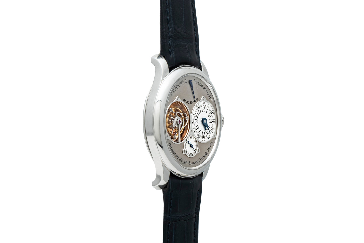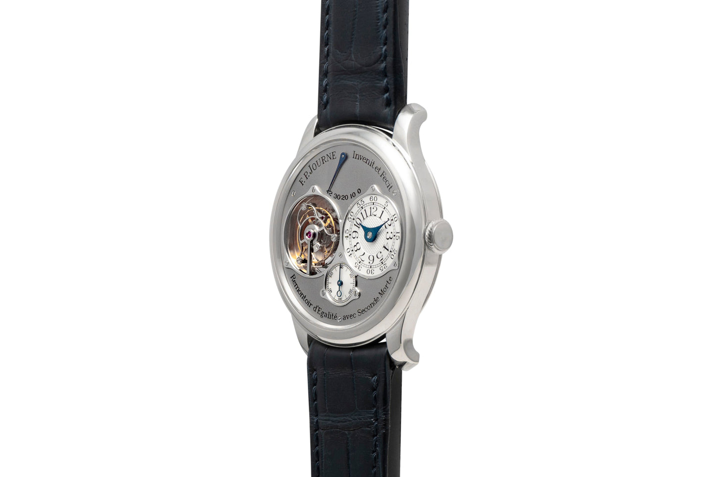 Finished with a signed black alligator leather strap with matching platinum pin buckle, this exquisite piece is without question one of the finest independently-made timepieces we’ve had the pleasure of offering. This watch was evaluated and authenticated by F.P. Journe's NYC boutique prior to listing, and will include certificate of origin from F.P. Journe (on order).