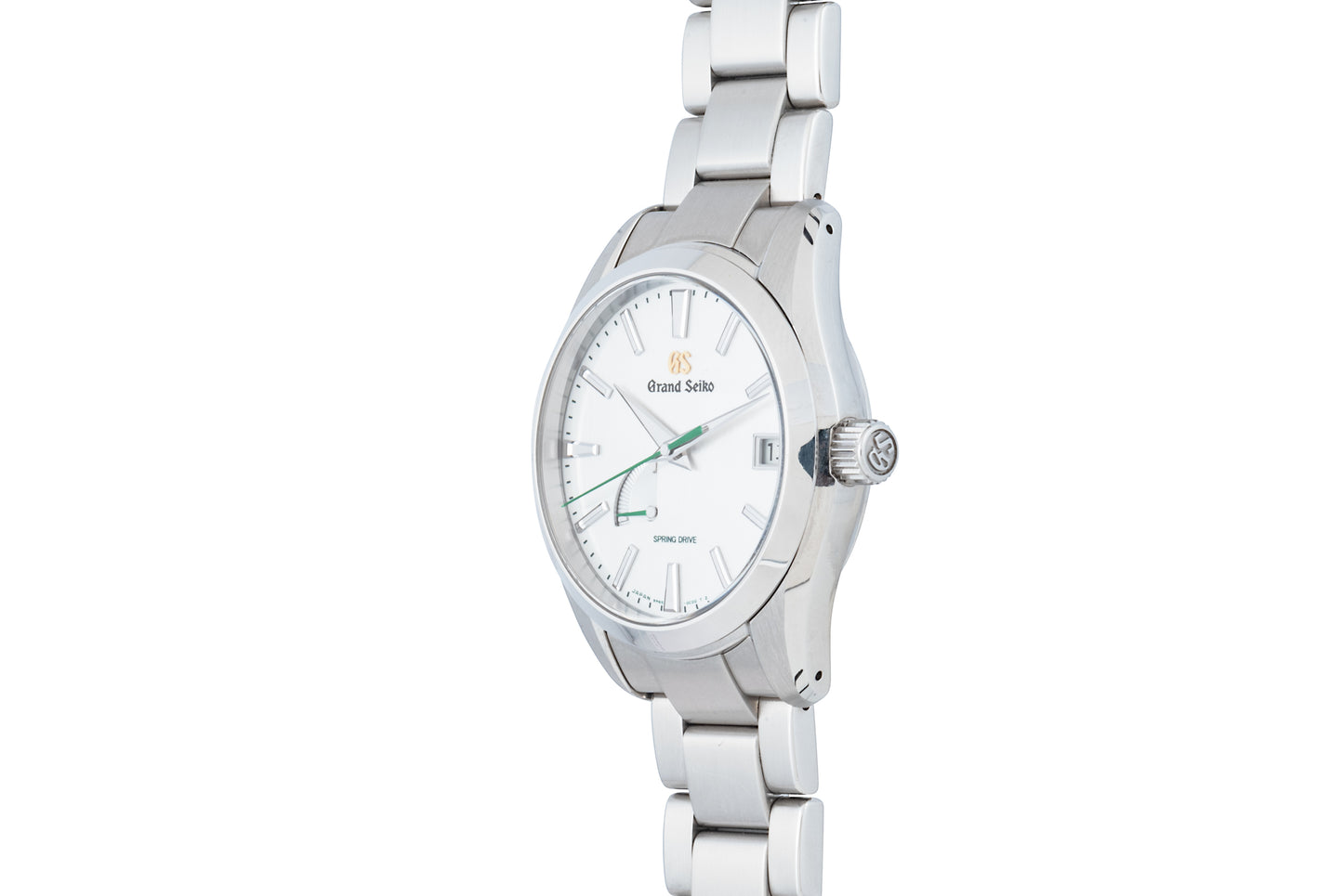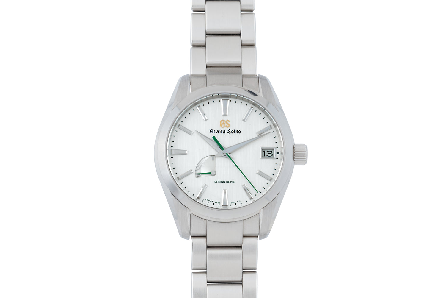 Powered by Grand Seiko’s innovative Caliber 9R65 Spring Drive movement with 72 hours of power reserve, it comes paired to a stainless steel bracelet with a signed push-button deployant clasp.