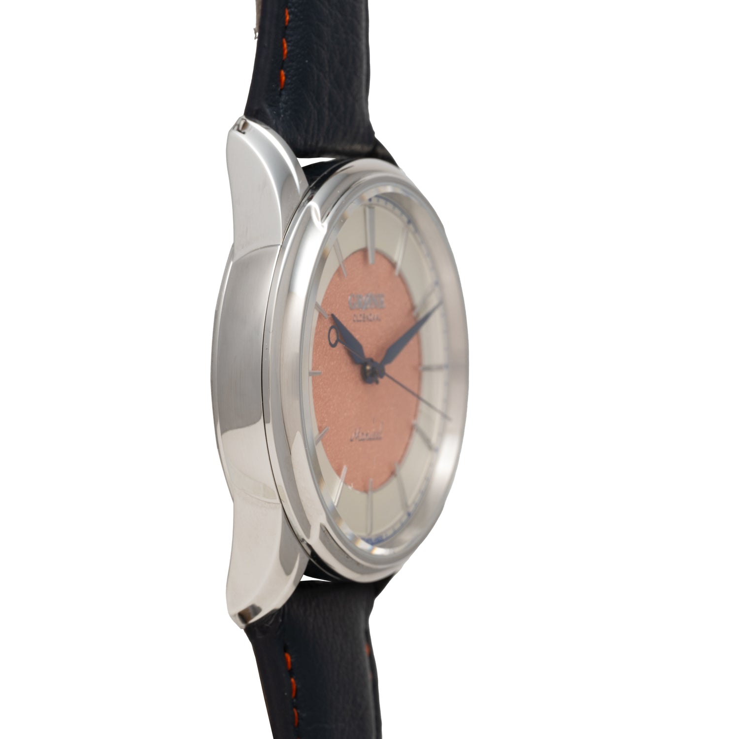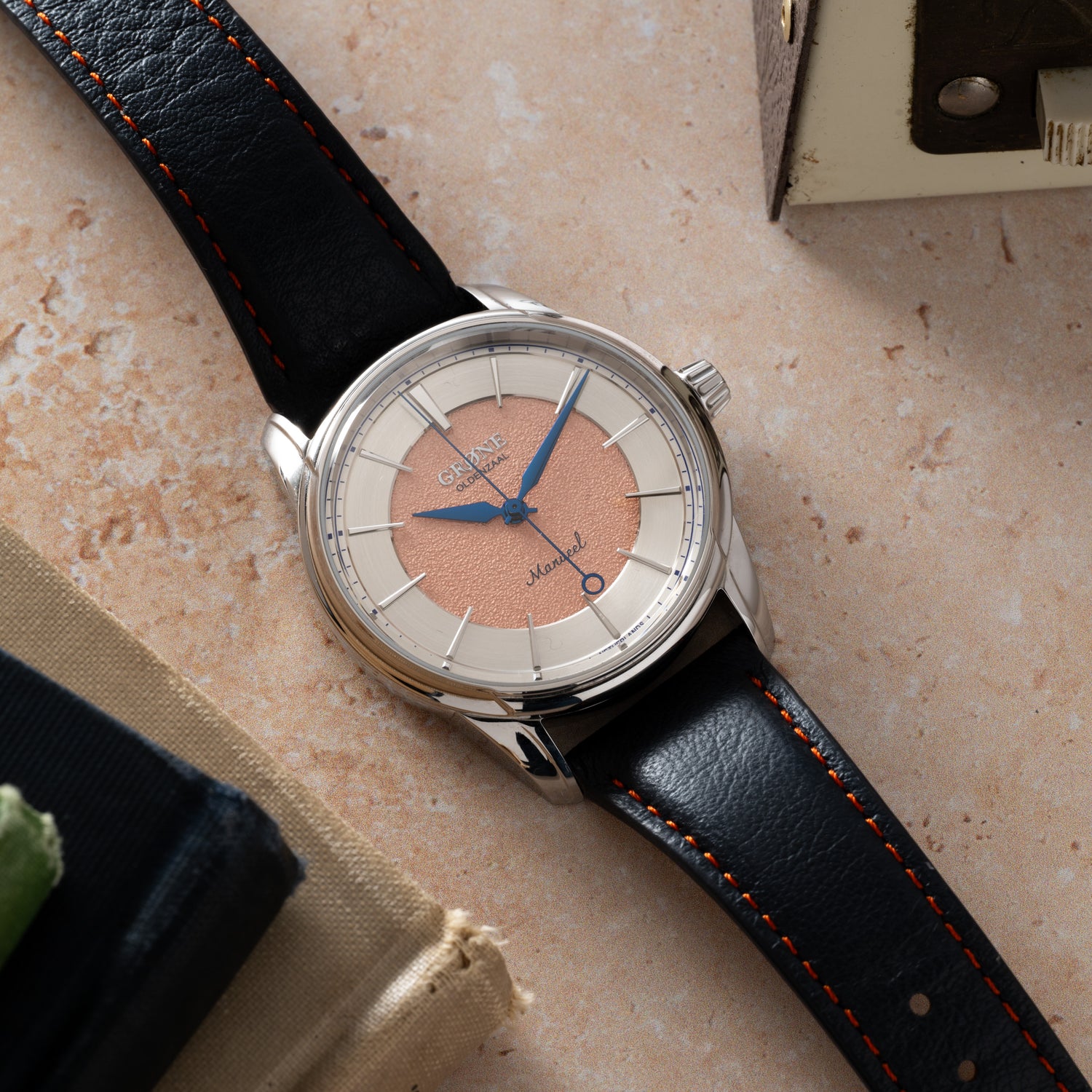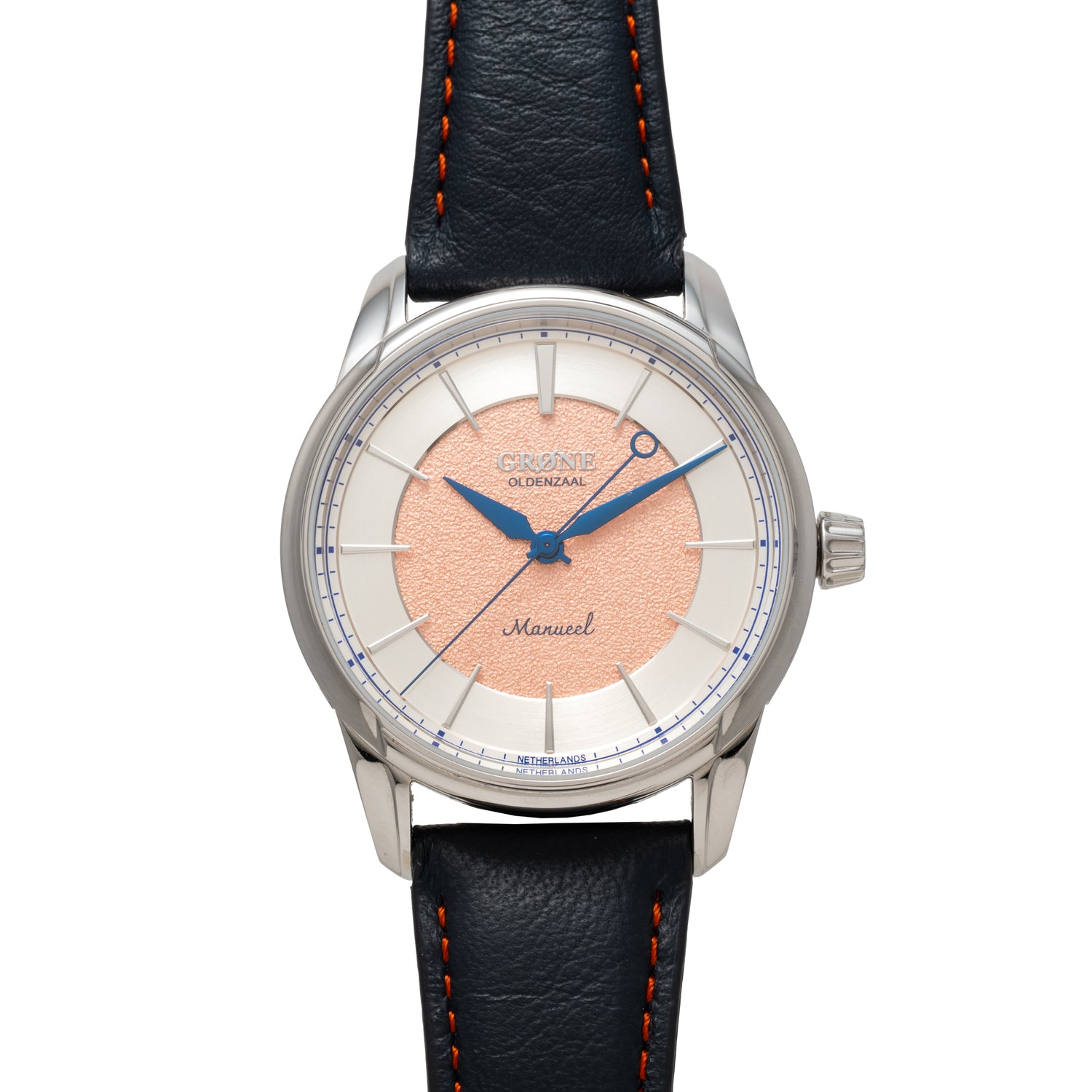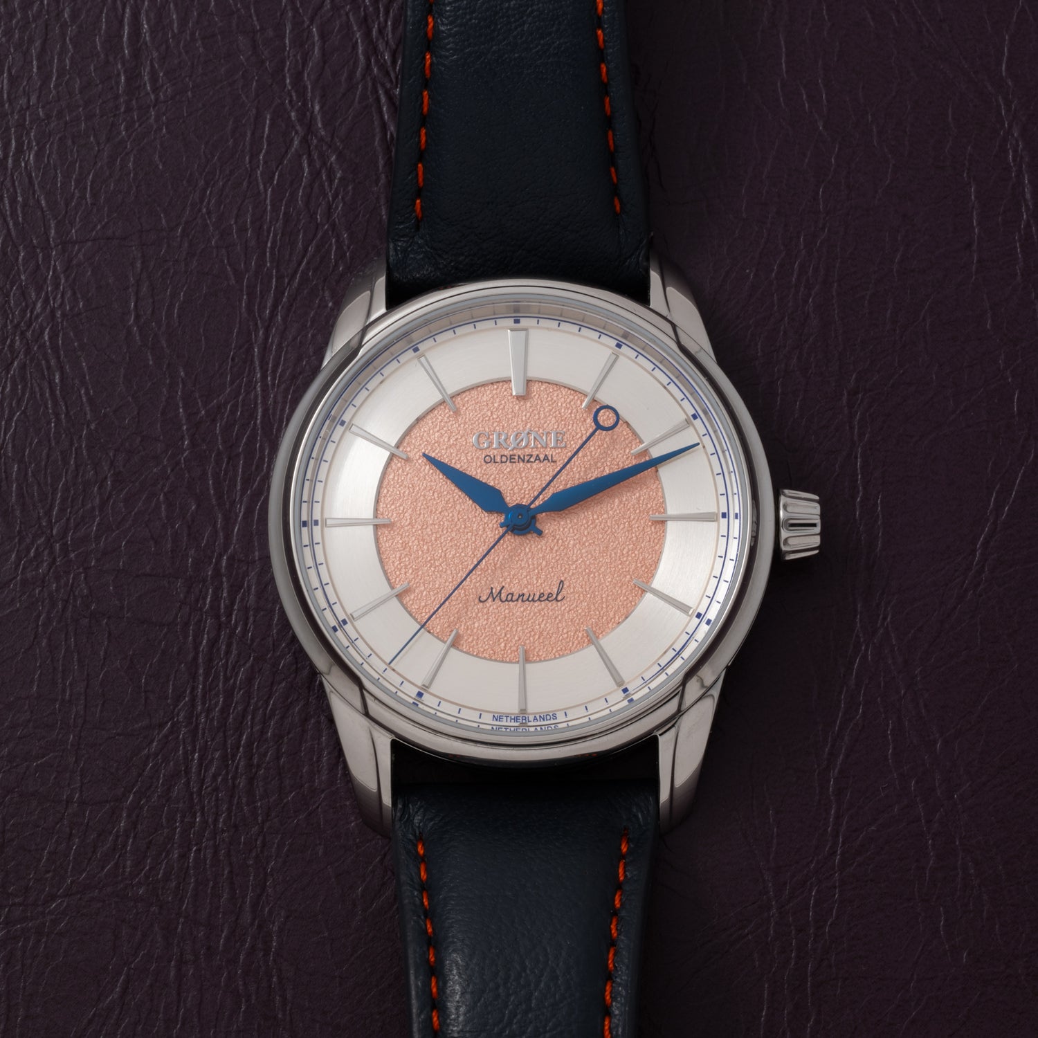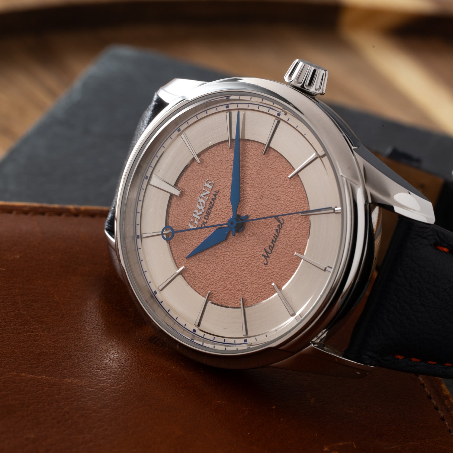 The Grönefeld brothers possess a true love for horology, and decided to create a second brand to support a more accessible side of the market. the Grøne brand was thus conceived. This Grøne Manueel One. Offered at a very affordable price point, this piece packs a serious punch with a gorgeous tremblage salmon dial surrounded with a silver outer rings and a variety of other refinements.
