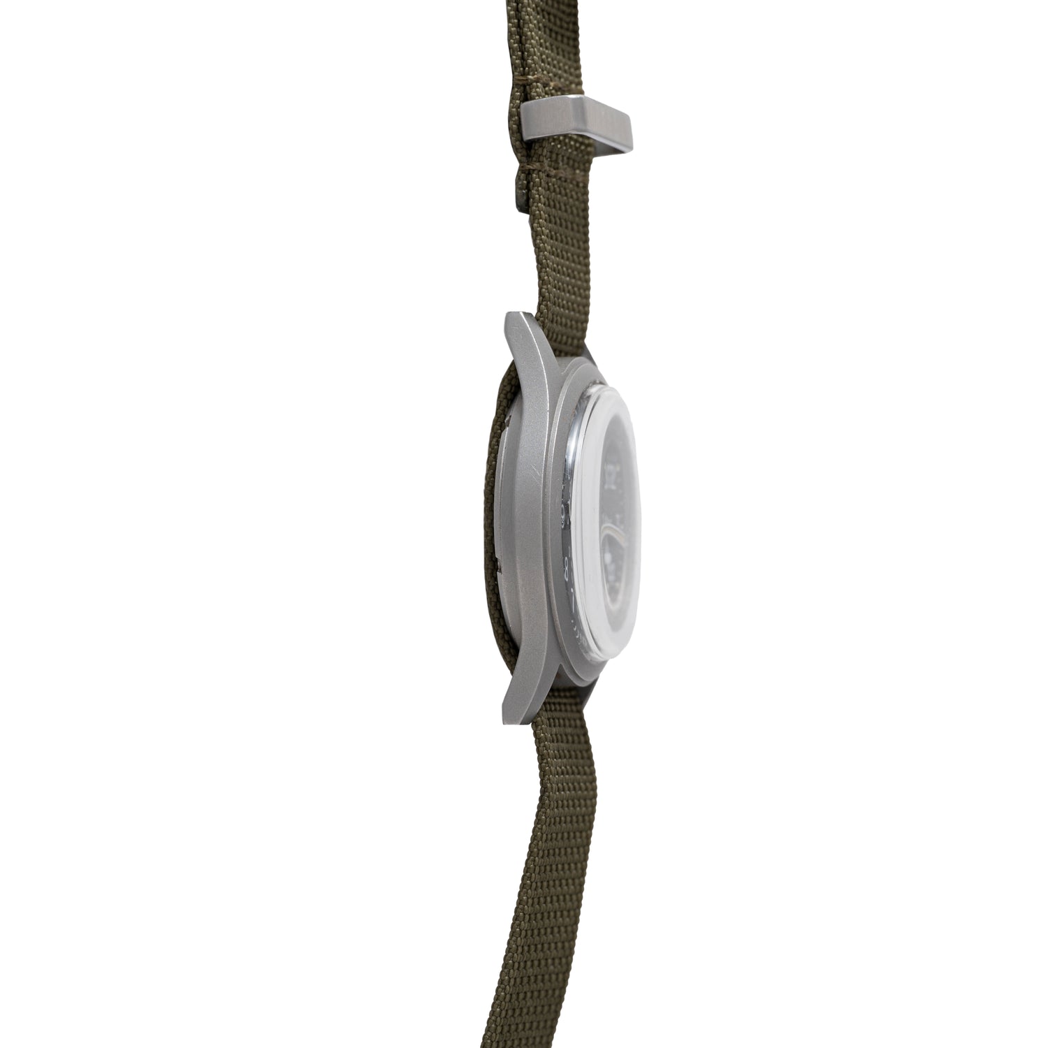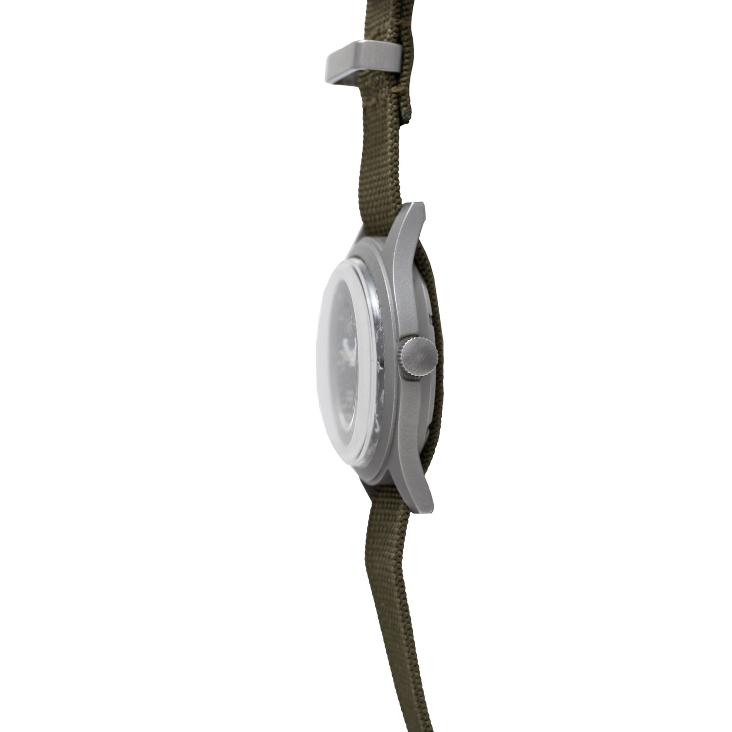 Their dials were spartan, and featured printed Arabic indices for both 12- and 24-hour graduations with luminous plots at each interval, with matching luminous 'syringe' hands and a 'spear' central seconds hand which was coated with a healthy dollop of Tritium to ensure maximum legibility. The 17-jewel, manual wind movements fitted were equipped with a hacking feature: a mechanism that stops the second hand from moving when setting the time. This enabled soldiers to synchronize their timepieces for maximum accuracy during elite operations and coordinated maneuvers. Despite the compact size of 34mm, these watches were designed to take a beating.