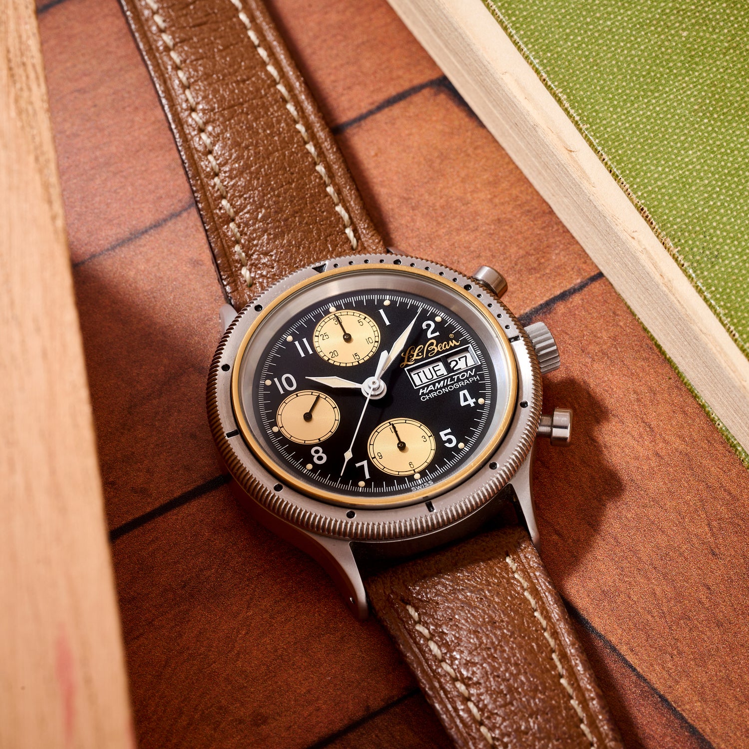This particular example adds a layer of distinctly American charm. Produced under contract for L.L. Bean of Freeport, Maine, it represents a fascinating intersection between Hamilton’s watchmaking muscle and New England’s most iconic outfitter. While most Hamilton x L.L. Bean collaborations leaned into straightforward Khaki field watches, this tri-register chronograph is a rarer and more compelling detour.