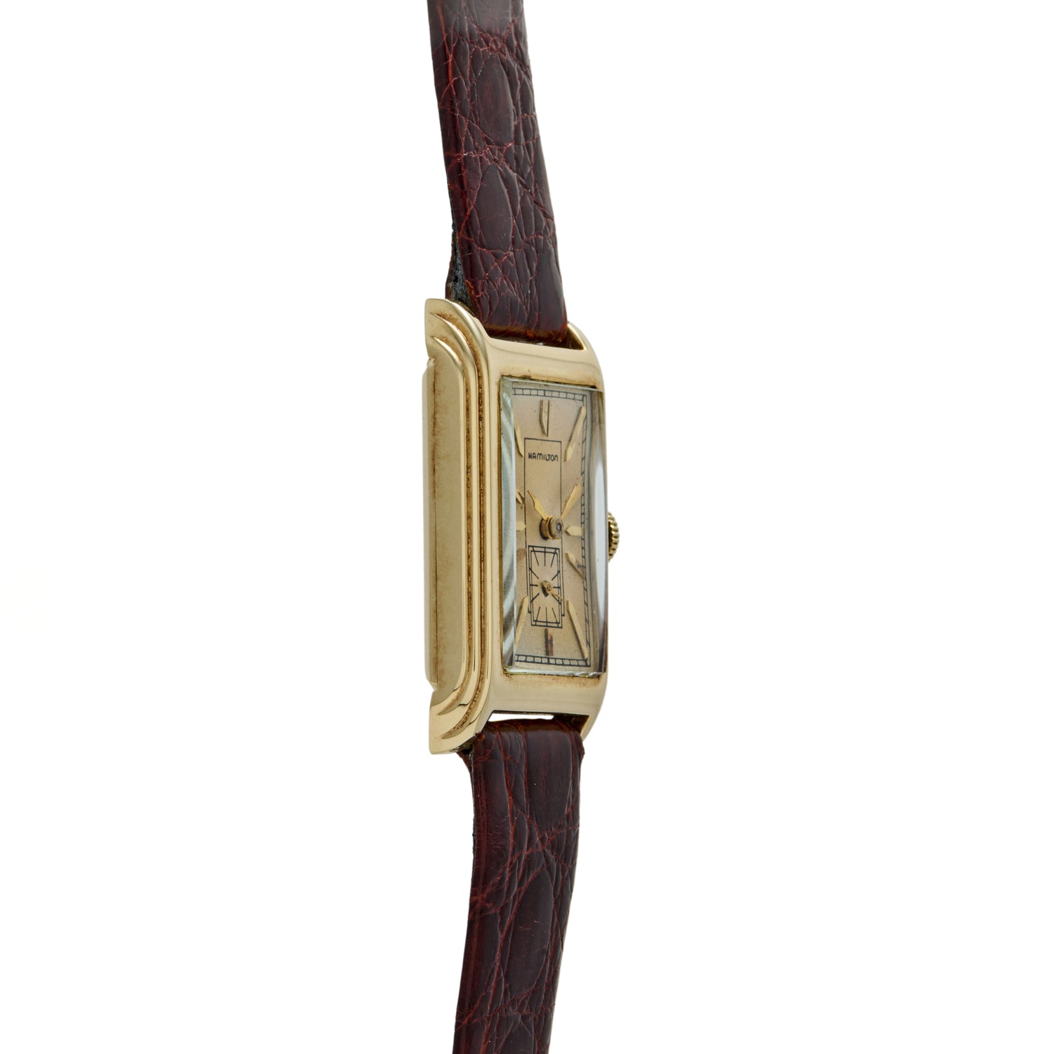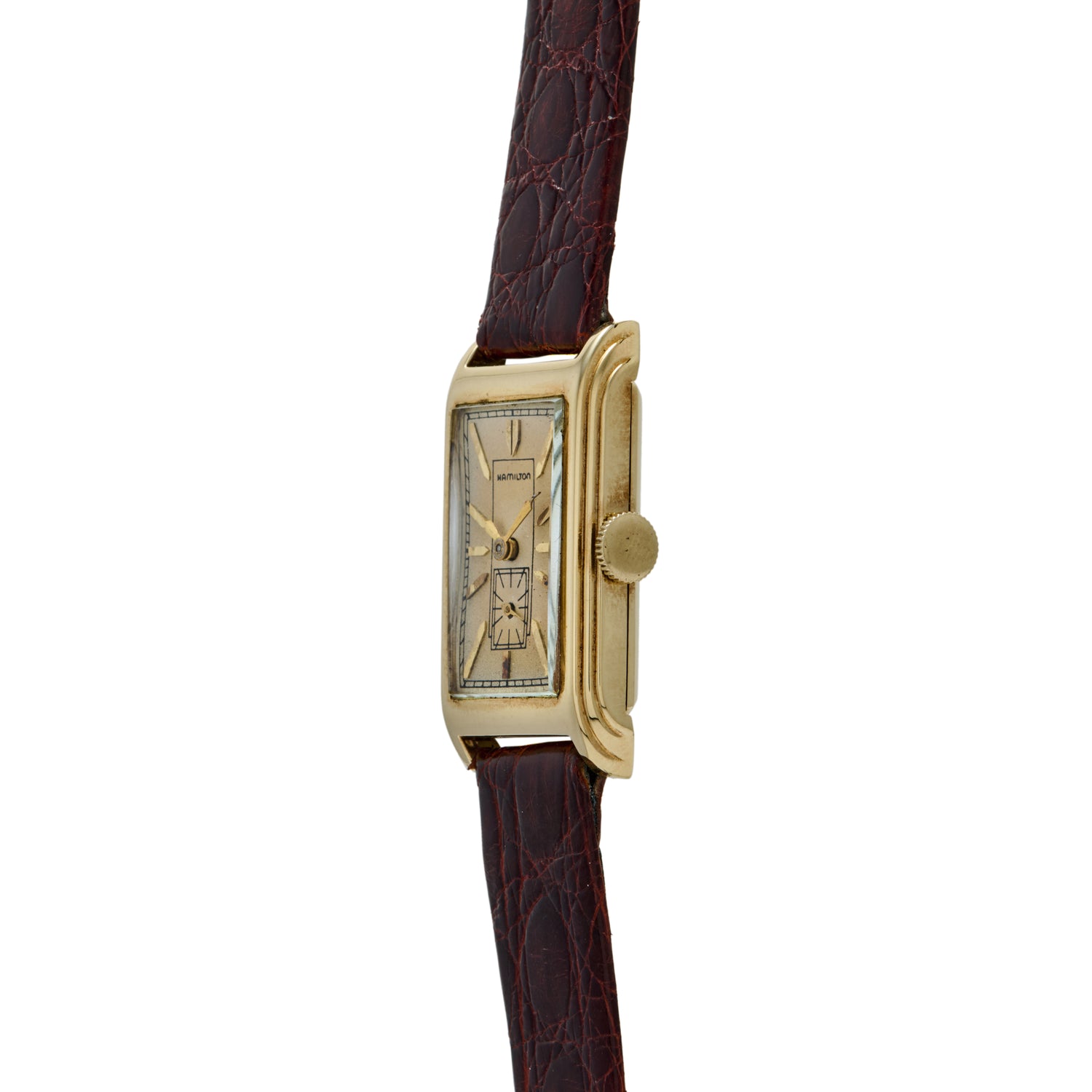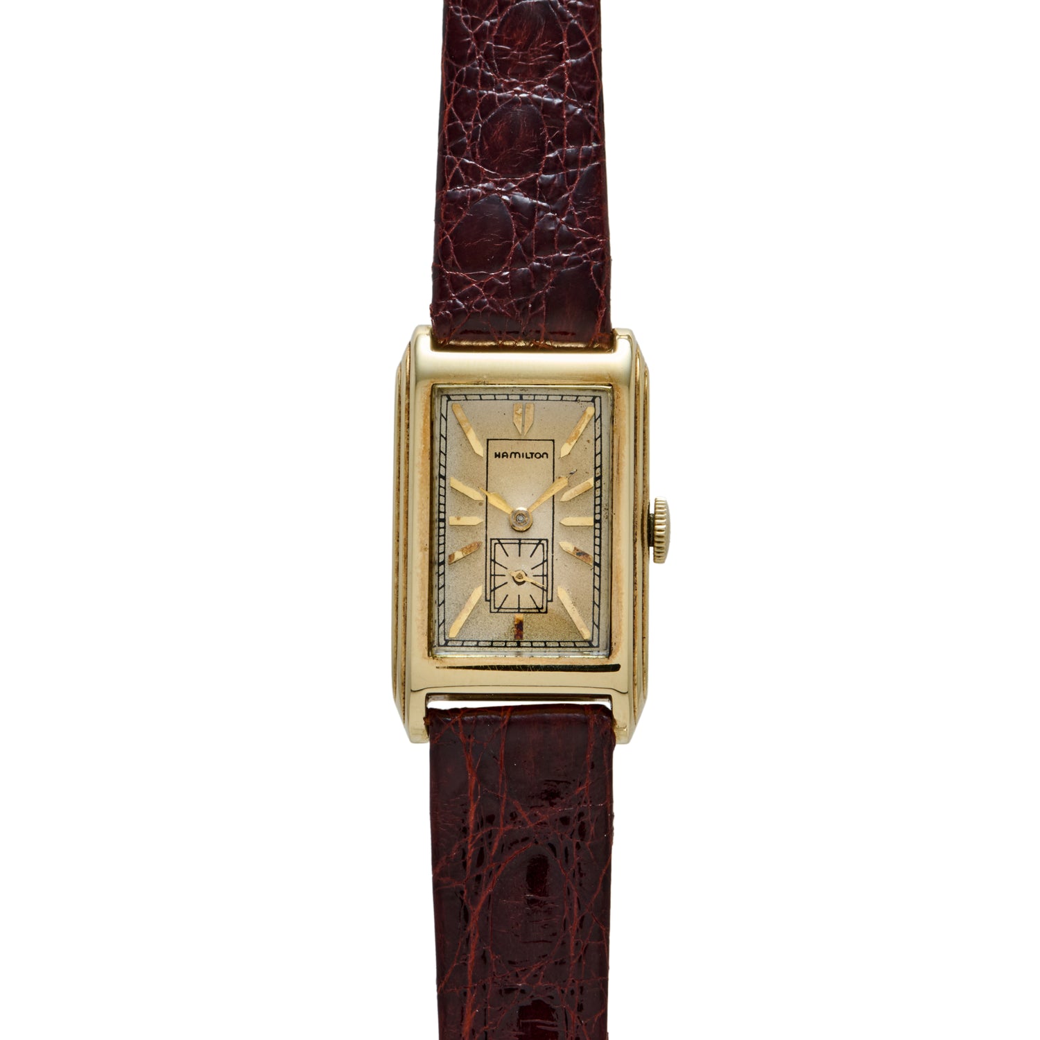 In the 1920s, Hamilton began to deviate from the typical round cases that predominated in the early years of wristwatch production. The company experimented with a variety of shapes, from the square or rectangular “tank” shapes popularized by Cartier to bold asymmetrical designs that subtly foreshadow the Victor, one of the world’s first electric wristwatches.
