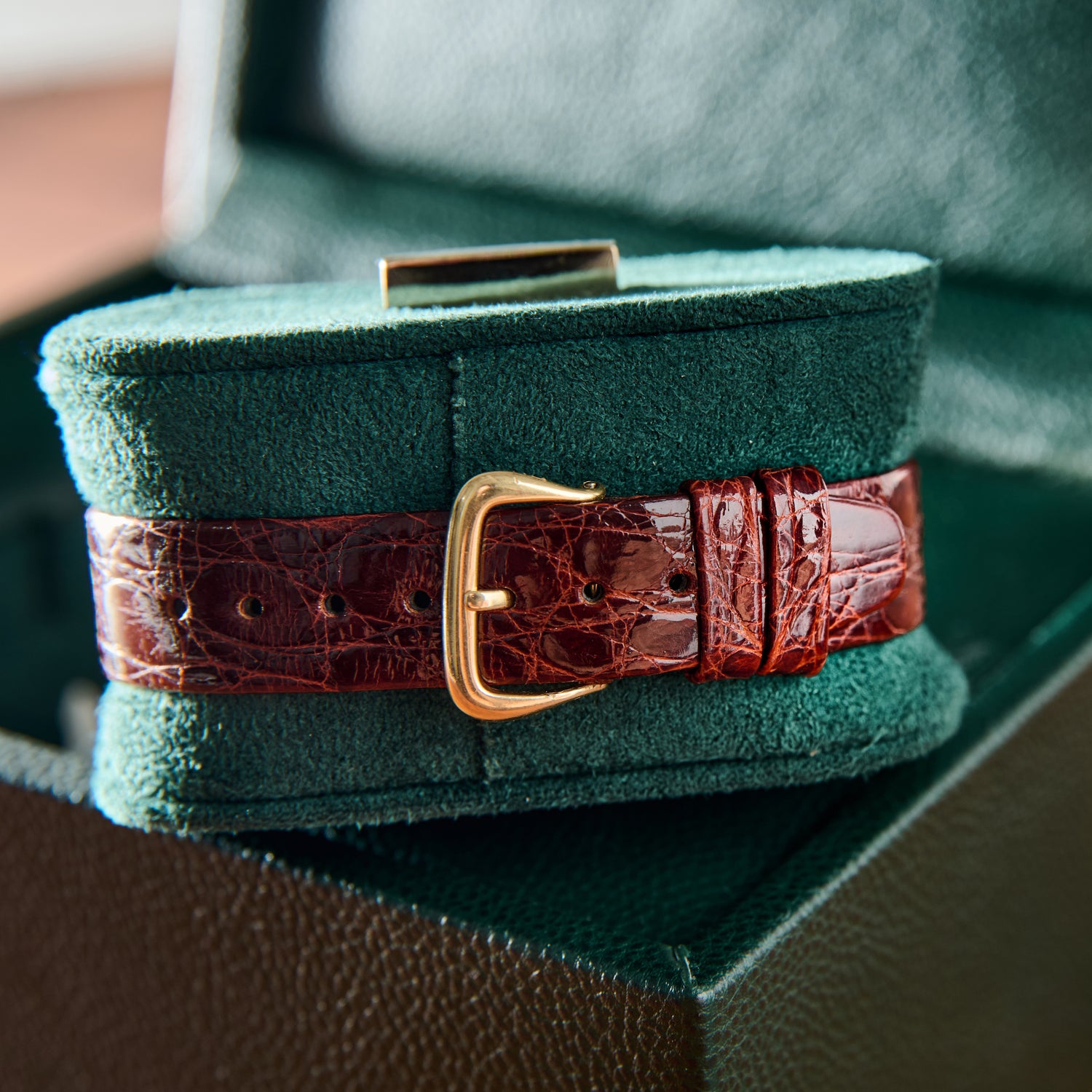 This particular Hamilton is an excellent representation of that shift. Featuring a 14K gold case with a stepped case characteristic of the 1930s when this watch was made, this piece is outfitted with a classic faceted-index dial, subsidiary second register, and manually-wound Cal. 401 movement within. This Hamilton "Livingstone" is extremely rare in precious metal--- especially in working condition. Plus, it retailed for 70 dollars when it was first produced!