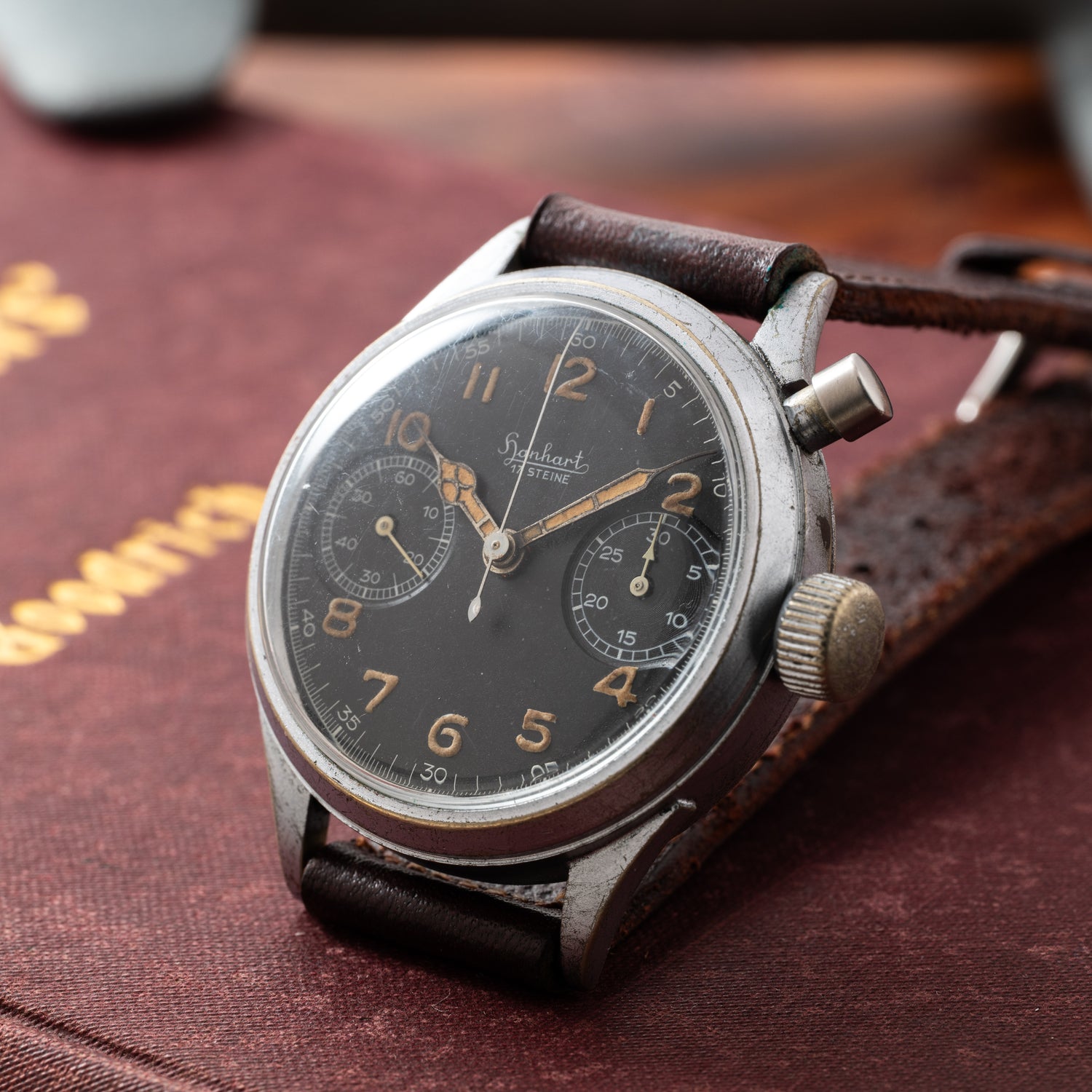 Hanhart, the famous German watchmaker, made various notable chronographs during the 20th century — including one, the Reference 417ES, that was famously worn by Steve McQueen during the 1950s. However, perhaps none are more notable than the monopusher models made as early as 1938 for German naval officers and flight crews, which were based upon the manufacture’s Calibre 40 movement.