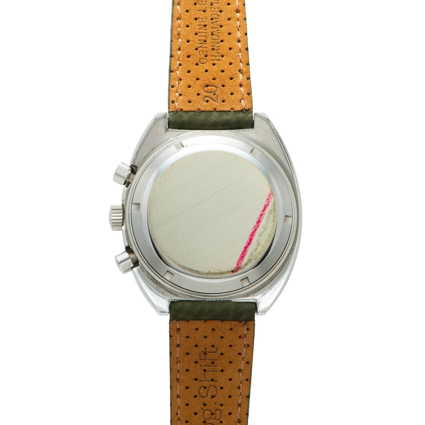 What's clear is that these were produced by Heuer under contract for the German Armed Forces. From its design it's also clear that the contract specified a Bund-spec dial, and Heuer clearly leaned on its experience with the 1550SG to produce it. This time, it produced a triple-register layout and utilized a hand-cranked Valjoux 7736 drivetrain, topping the time-keeping capabilities with combination 60-minute/12-hour bezel. Measuring 42mm in stainless steel and featuring pump pushers and a signed crown, it's a serious tool watch with excellent bona fides.