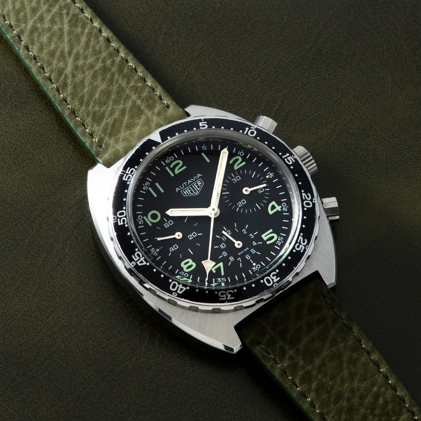 While the Ref. 73663 'Bundeswehr' isn't necessarily 'iconic,' it is an incredible combination of features: The 1970s cushion-case Autavias are visually stunning and wear wonderfully, especially when driven by manual-winding movements, which allowed the cases to be slightly thinner. The subdued military-style dial with luminous Arabic numerals, an outer white minute track, a triple-register chrono layout, and a luminous 'sword' handset harks to decades of spartan military timepiece production while injecting Heuer's distinct design language. The result is, frankly, drool-worthy.