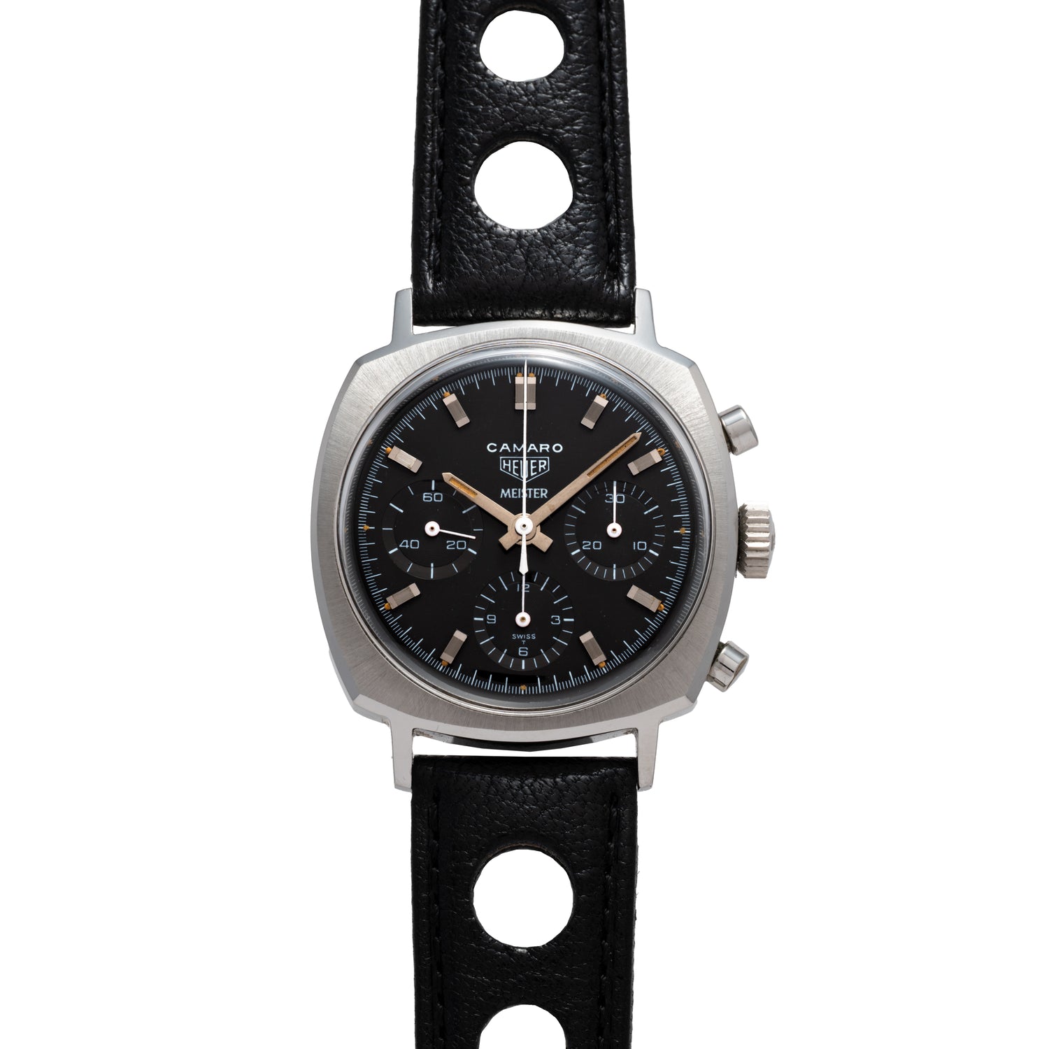 Heuer launched the Camaro in 1968. As something of an outlier when compared to the automatic chronographs Heuer would release the following year, the Camaro lived very much in the shadows. It had one of the shortest production runs of all the models, only a few short years, which led to its relative rarity today.