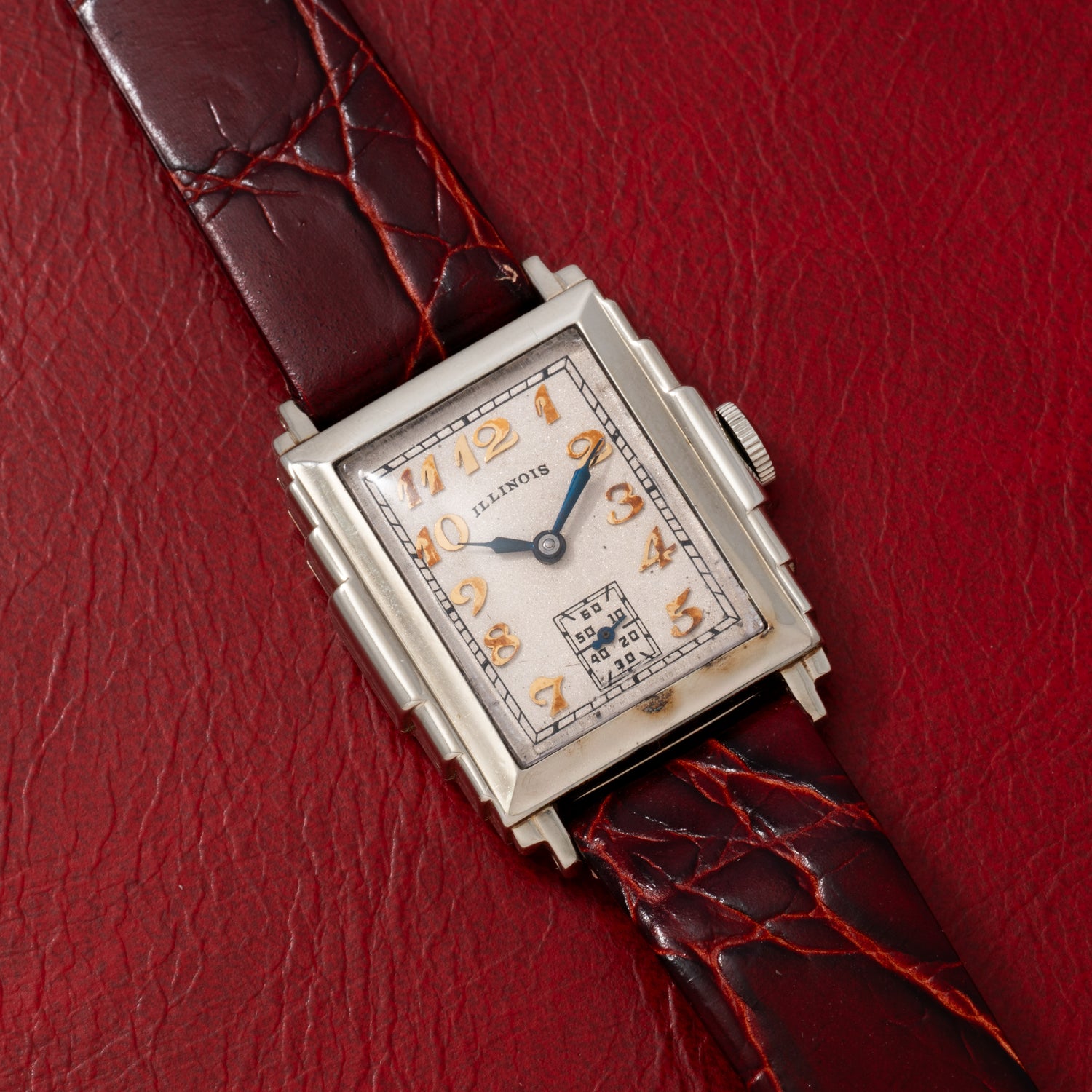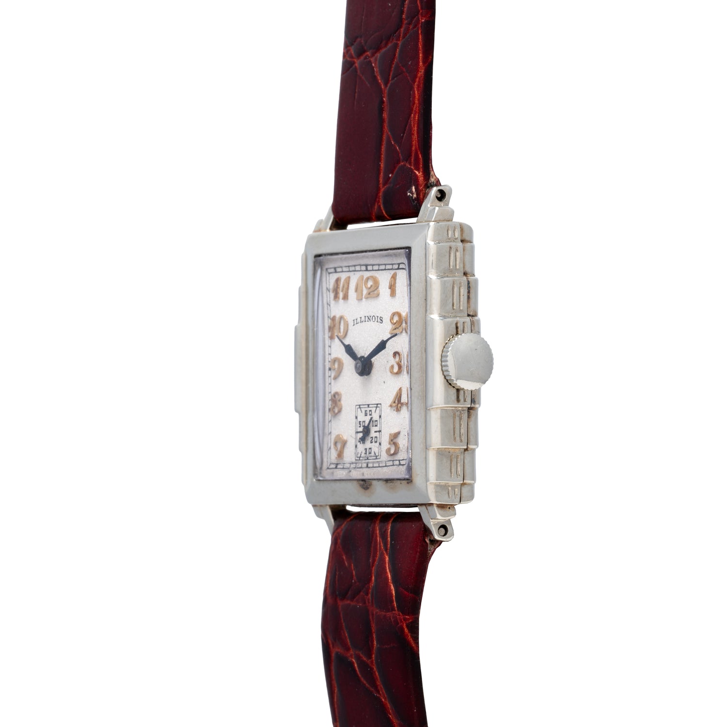 Illinois didn’t just make pocket watches. In the 1920s, it ventured into wristwatches with beautifully styled Art Deco and Streamline Moderne cases—now much admired for their design and rarity.