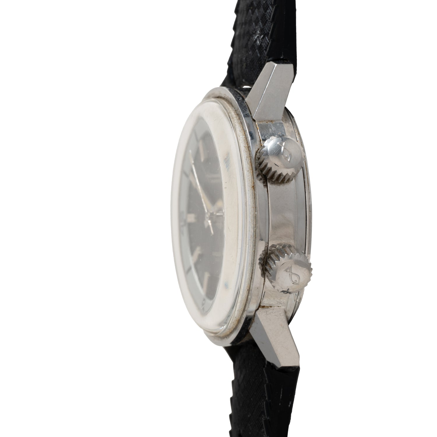 This particular Aquatimer, a Reference 812, dates back to the second half of the 20th century and flaunts the classic twin crown display, date window, and black dial that made this one of IWC iconic designs. Launched in 1967, the Aquatimer 812 was designed to take on the Submariner with its EPSA compressor-style case.