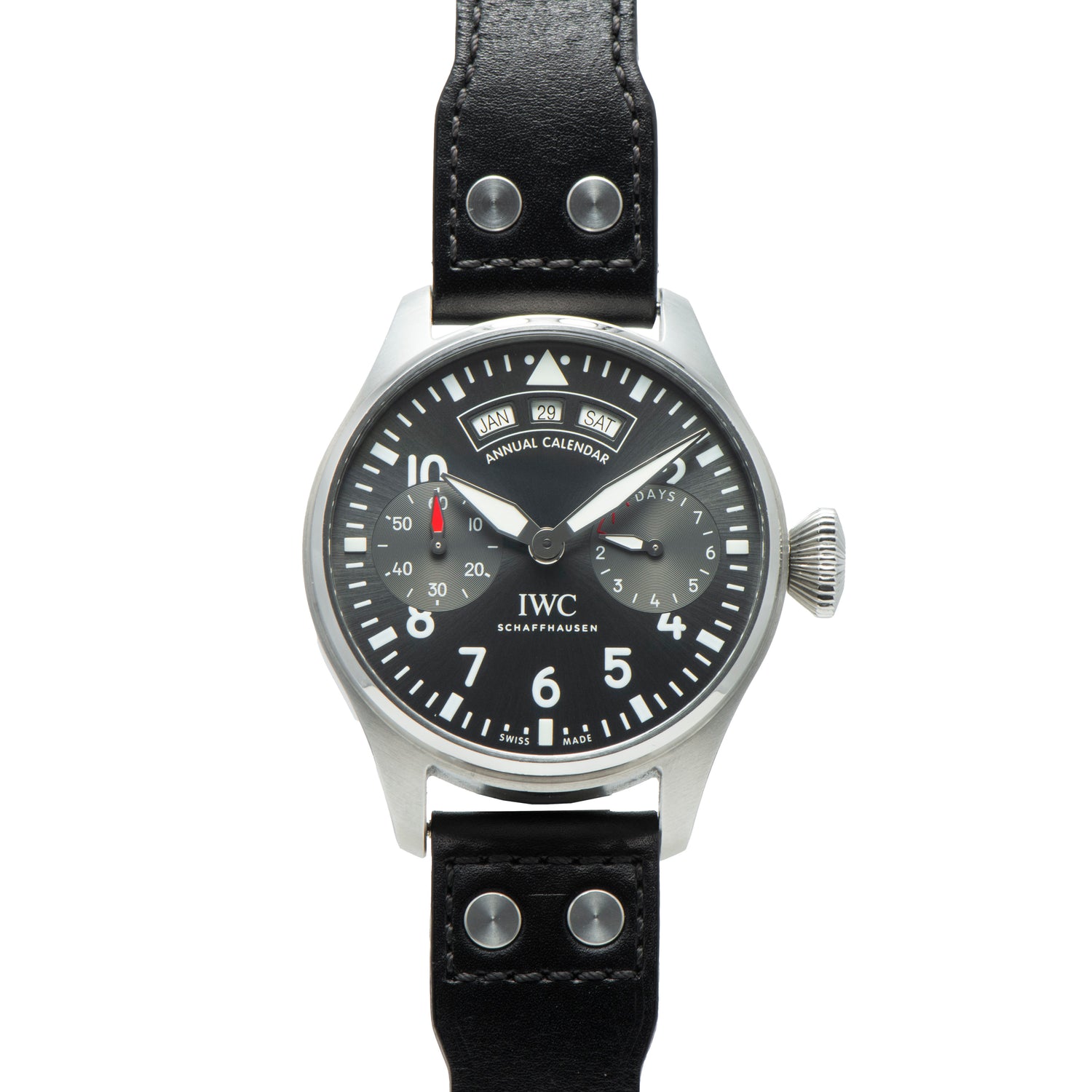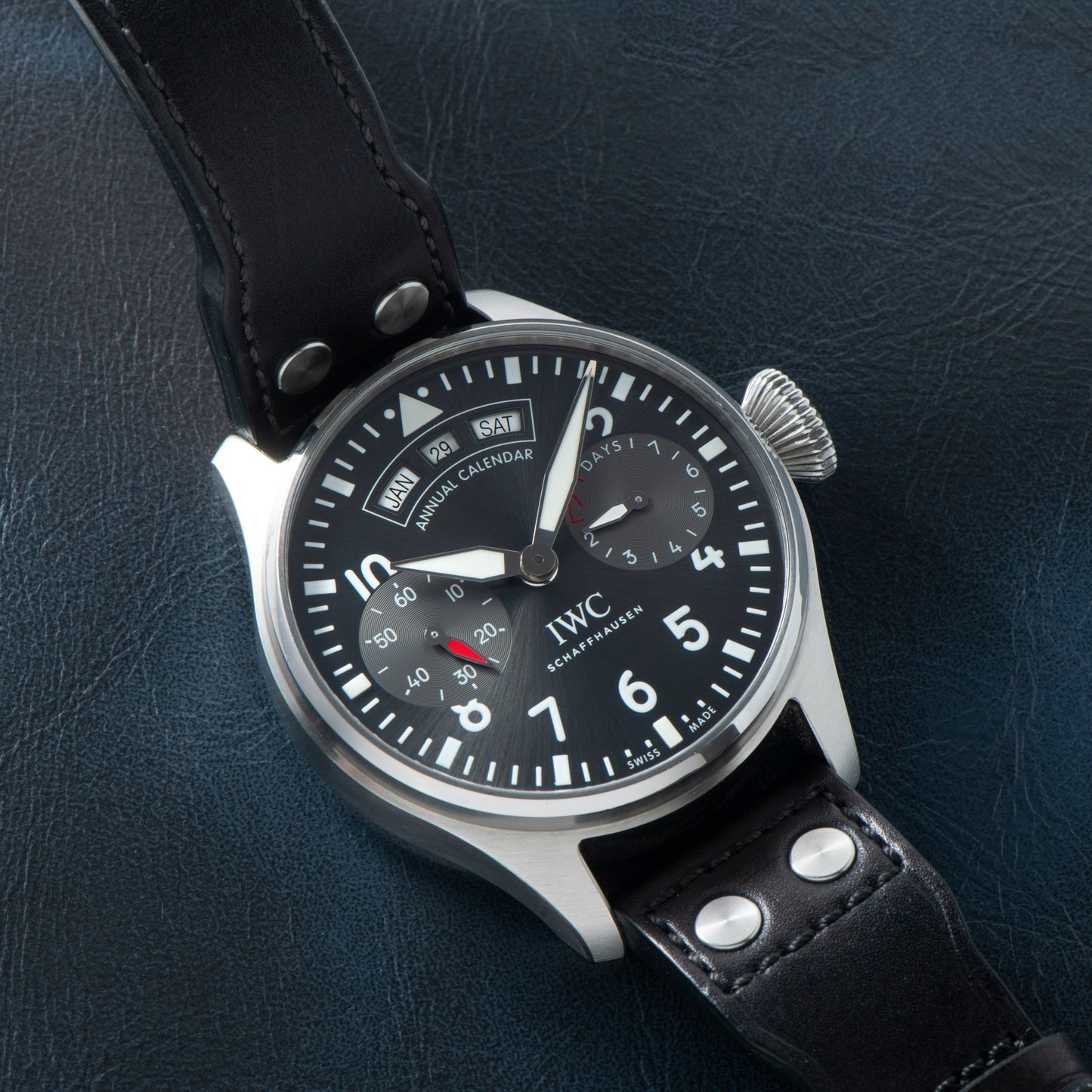 –The IWC Big Pilot's Watch can trace its history back to the oversized timepieces produced for military aviators in the 1940s. These enormous pieces were originally designed for maximum legibility in a cockpit setting, with luminous dials, hand-wound movements, and robust steel cases.