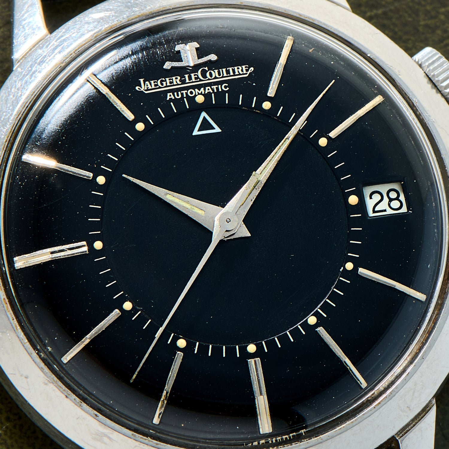 Powered by the automatic Jaeger-LeCoultre cal. K825 movement, this incredible mid-1960s ref. 855 Memovox comes paired to a black leather strap with a stainless steel pin buckle. In excellent condition with beautifully aged lume and a versatile black dial, it's quite simply JLC lover's dream come true.
