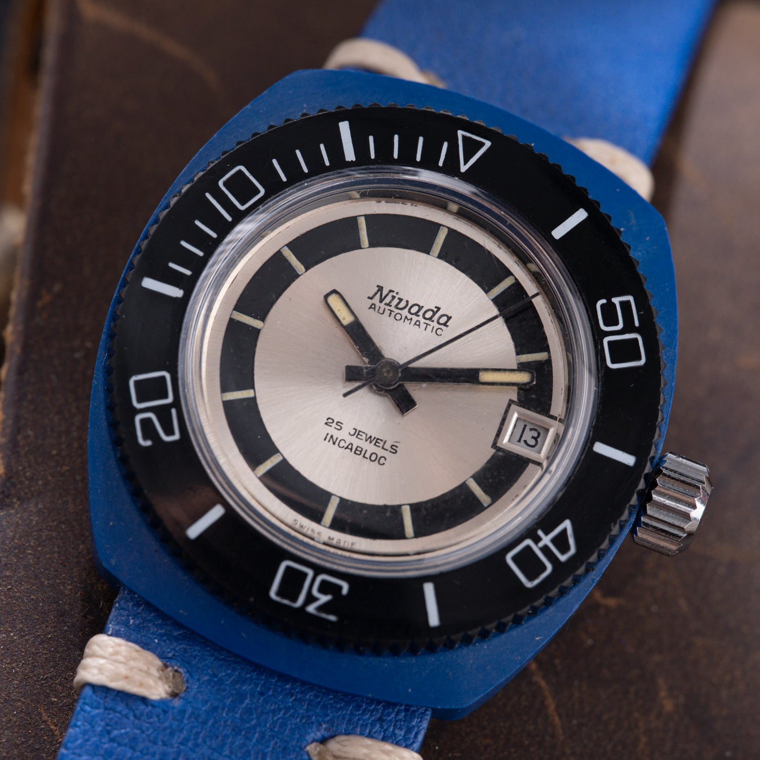 Nivada (or Nivada Grenchen) should be a familiar name to vintage watch collectors. Their sporty diver's chronograph, the Chronomaster (or sometimes the Chronoking) Aviator Sea Diver, has been gaining well-deserved traction on the vintage circuit. But in the 1960s the brand was also a trailblazer in the realm of dive watches, producing numerous handsome examples. Some, such as the Depthmaster, even featured a groundbreaking 1,000-m depth rating!