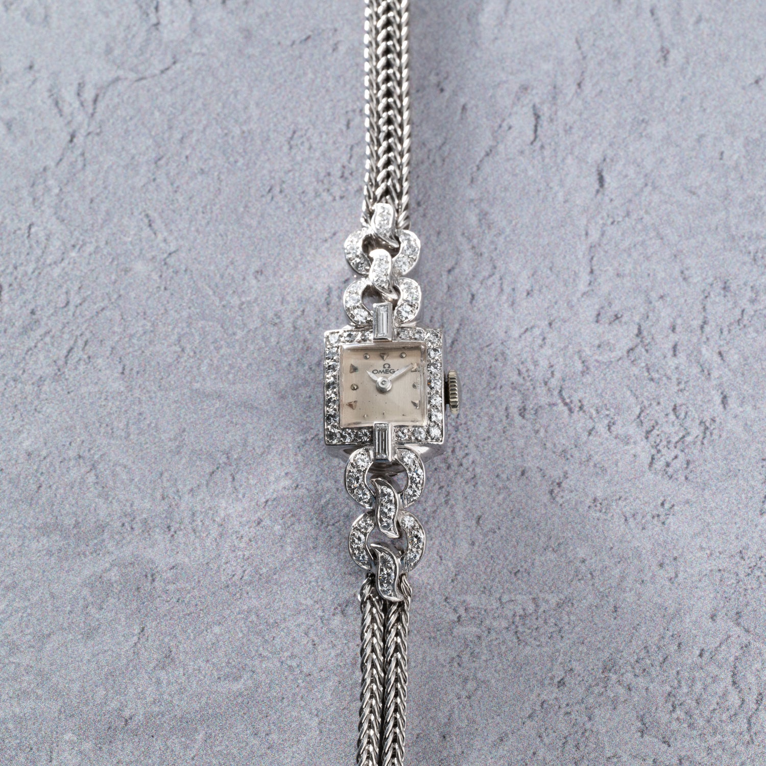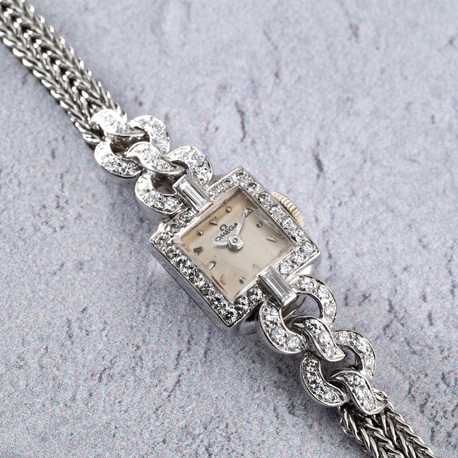 Powered by a hand-wound movement and paired to an integrated, diamond-set platinum rope-motif bracelet attached to the case via platinum-set lugs, this wonderful cocktail watch is an absolute time capsule. If 1940s elegance is your cup of tea, then you need this lovely Omega on your wrist!