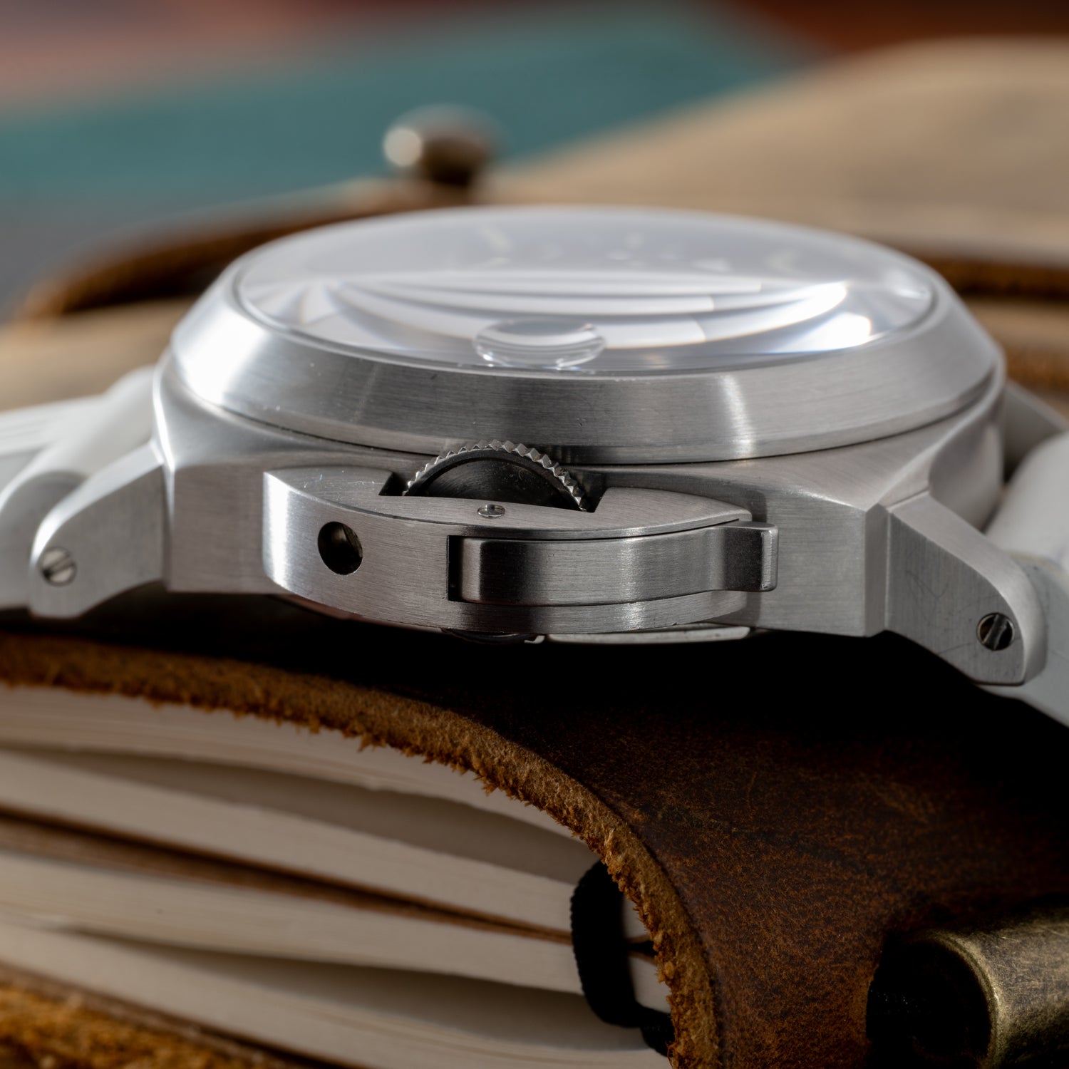 Following the War, Panerai developed a new, tritium-based luminescent technology it dubbed “Luminor,” which replaced the radium-based Radiomir. A new case design featuring a bridge and locking mechanism to increase water resistance accompanied this luminous compound, resulting in one of the most iconic case designs still in production today.