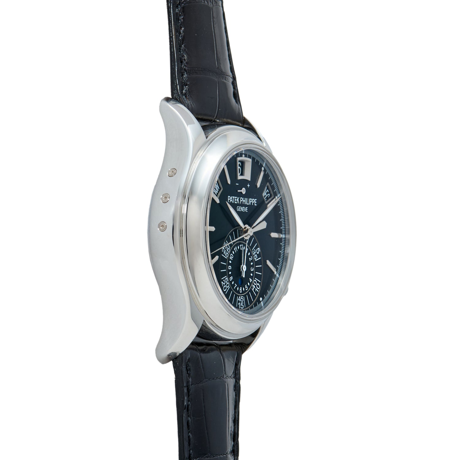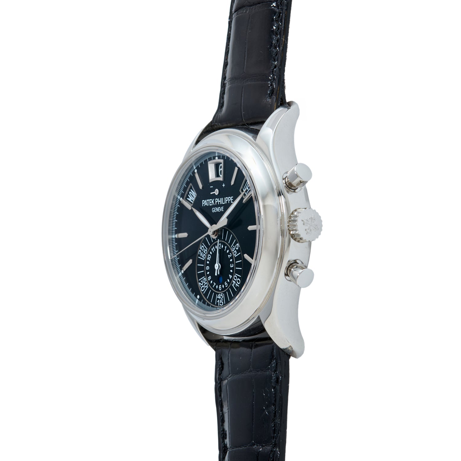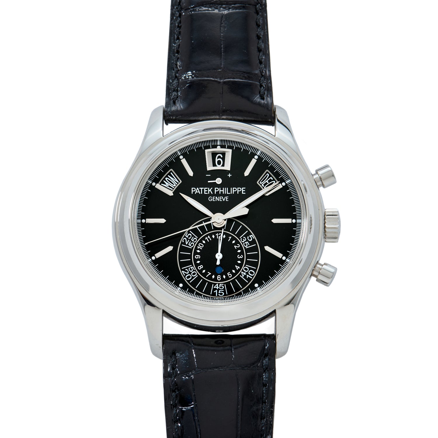 However, this is no ordinary annual calendar: A Reference 5905P-010 from circa 2019, it also includes a flyback chronograph — one in which a single button press both stops and instantaneously restarts the chronograph. Convenient for timing laps, this complication proves unbeatable when combined with the utility of an annual calendar.