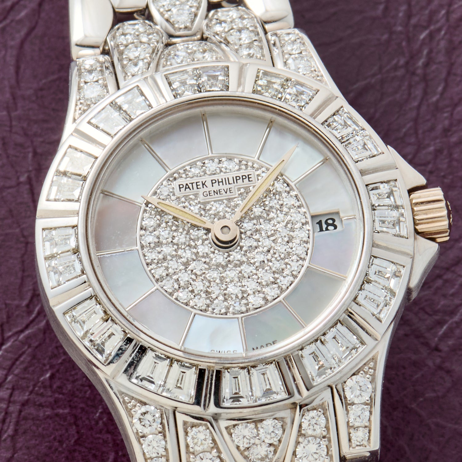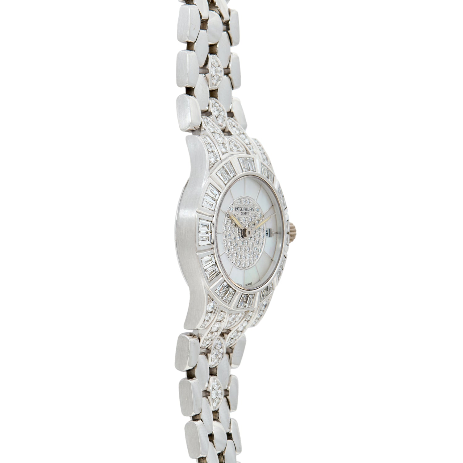 The Reference 4883/1G seen here showcases everything that makes the Neptune compelling. The 27mm white gold case wears slim and confident, with subtle crown guards and a beautifully crisp sapphire crystal. But the crown guards are about the only subtle aspect of this piece. The rest of the watch is decked out in beautifully cut diamonds. Multiple sizes and cuts litter the dial, bezel, crown guards, and first few links of this white gold beauty. Outbound, the dial flaunts a mother of pearl inlay that ties it all together in a classy fashion.