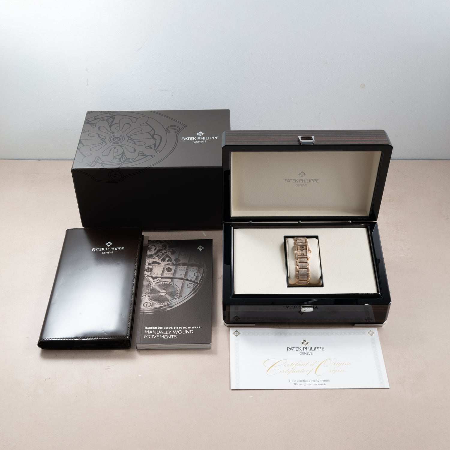 While many Twenty-4 models were made with quartz calibers within, this piece, representing the high end of the Patek ladies offerings, is instead equipped with a manual winding in house movement.