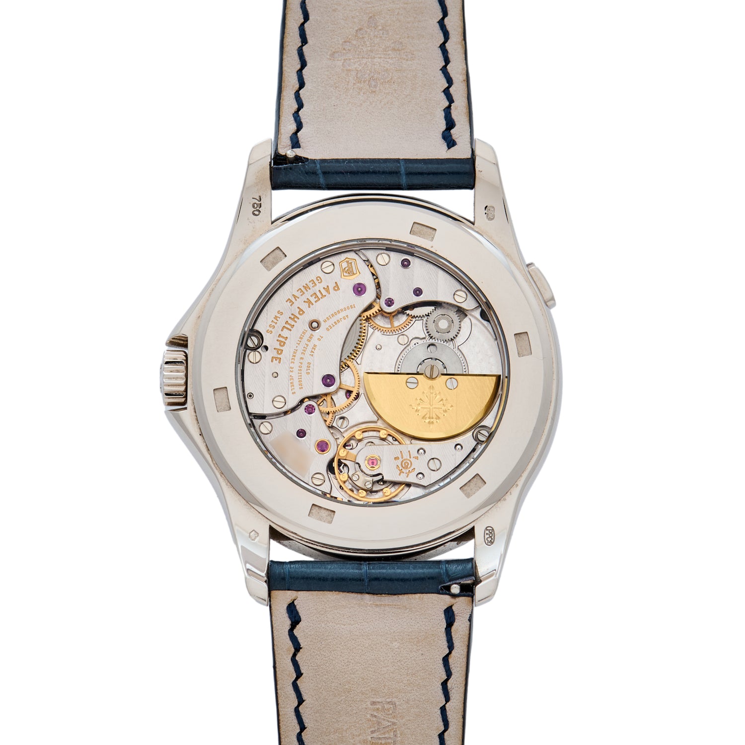 Turn it over, and the sapphire caseback reveals the Caliber 240 HU, an automatic movement that is slim, refined, and quietly astonishing. An elegant dark blue alligator leather strap, signed and fitted with a white gold folding buckle, completes the composition. And for good measure, we've included the watch's dealer ephemera, including its inner and outer presentation boxes, its paperwork, and its Certificate of Origin dated to 2011.