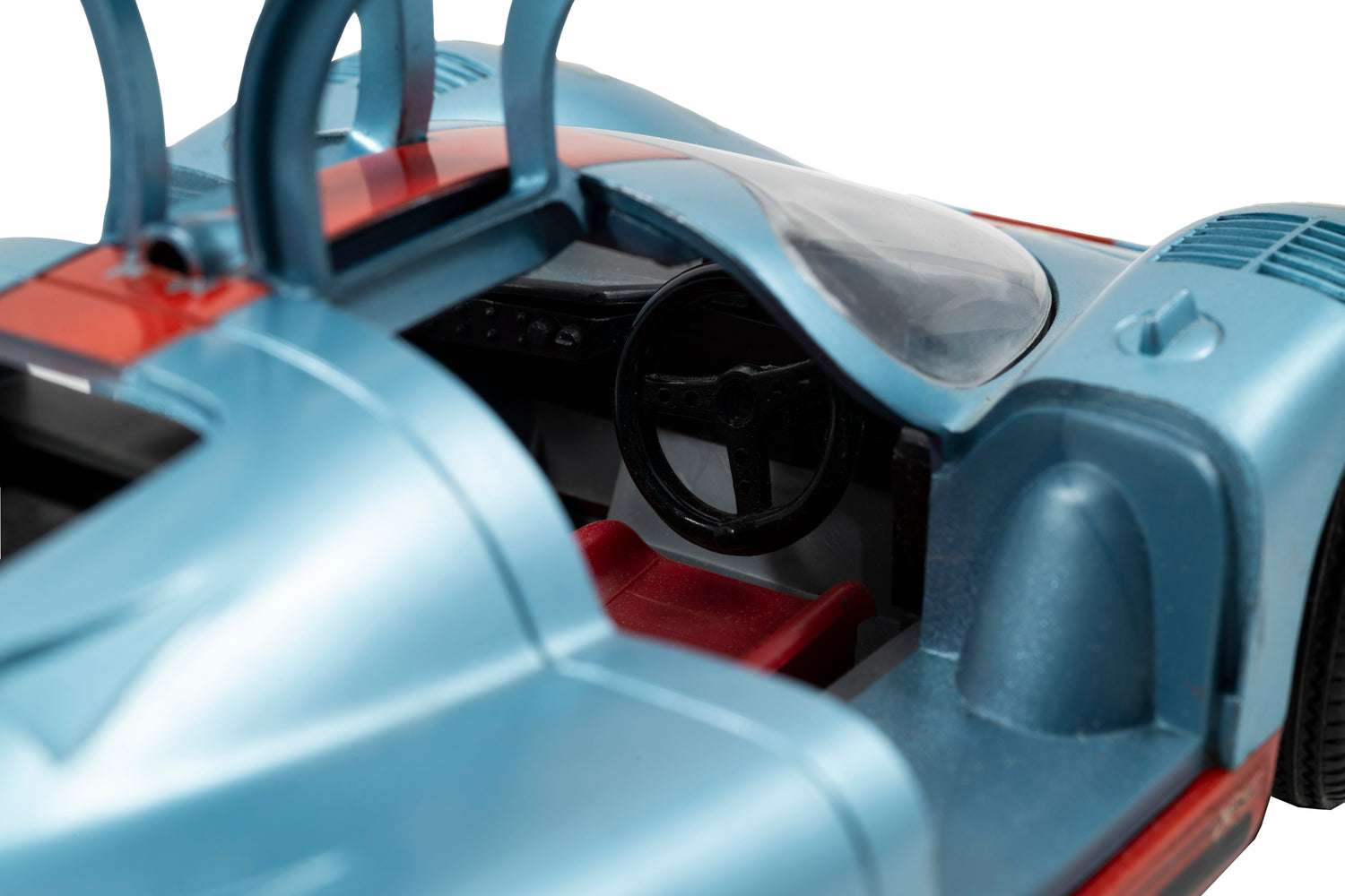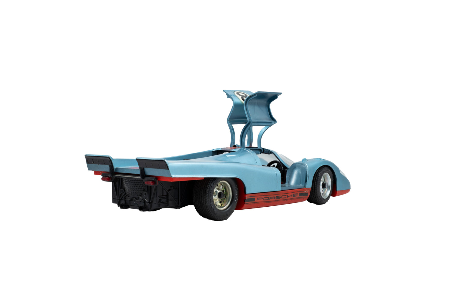 The Porsche 917 remains as one of the most imporant cars ever made in Porsche’s storied history, helping the brand snag its first overall win at the 24 Hours of Le Mans in 1970. Finished in the iconic blue and orange Gulf Racing livery, this miniaturized vintage model toy from Schuco dates to the 1970s and features a finely details only found on high-end diecast display models today. From its perfectly executed short-tail body, perfectly replicated wheels and tires, and finely detailed vents and headlights, this beautiful German-built toy is quite simply a masterpiece in its own right. It also features opening doors and a hidden battery compartment to power its electronic sound effects.