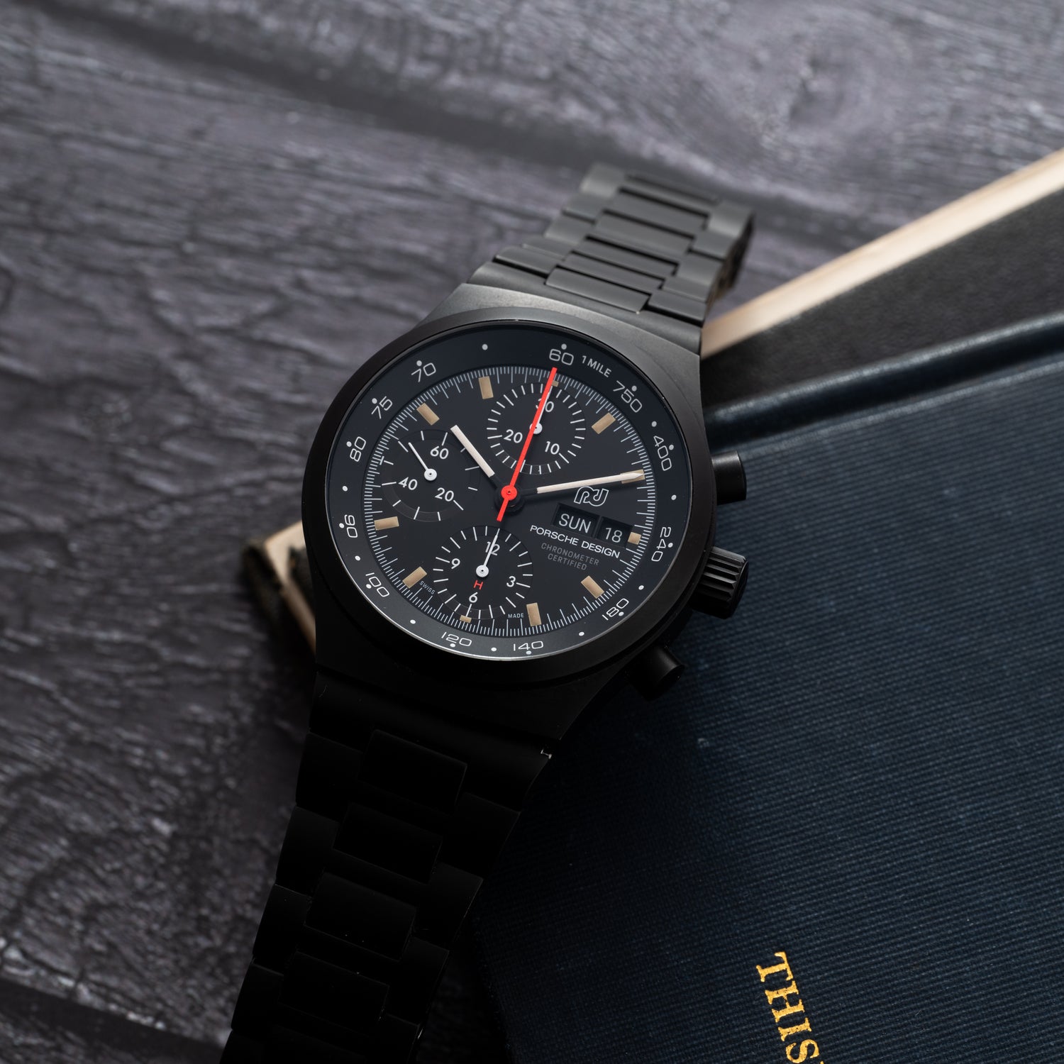 Designed by none other than Ferdinand Alexander ‘Butzi’ Porsche (creator of the 911), it was a technological marvel released in the very midst of the Quartz Crisis. Available in stainless steel, it was perhaps more famously seen in black PVD-coated steel — as in this example — making it the first commercially-available timepiece to feature such a ‘blacked-out’ treatment.