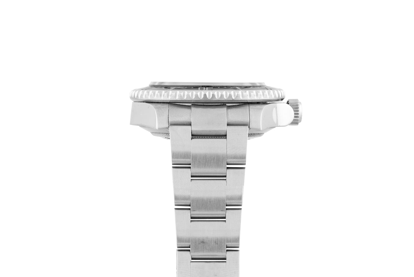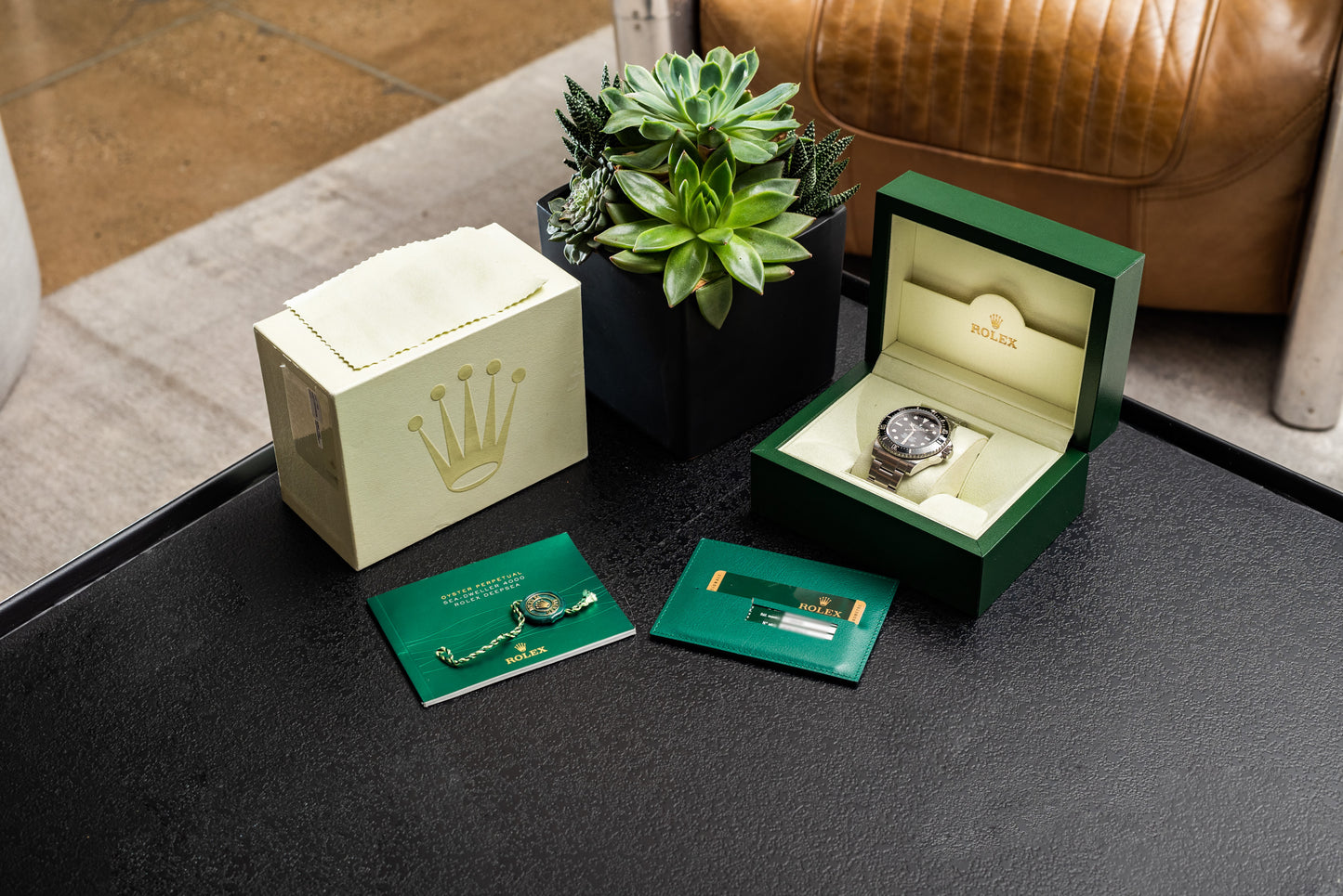 Additionally, it features a stainless steel Oyster case with a helium escape valve, a signed screw-down crown, a matte black dial with applied luminous indices and a matching handset, a unidirectional rotating timing bezel with a black ceramic insert, and a robust solid steel Oyster bracelet with both Rolex's fantastic Glidelock adjustment system, as well as a folding (and removable) dive extension.