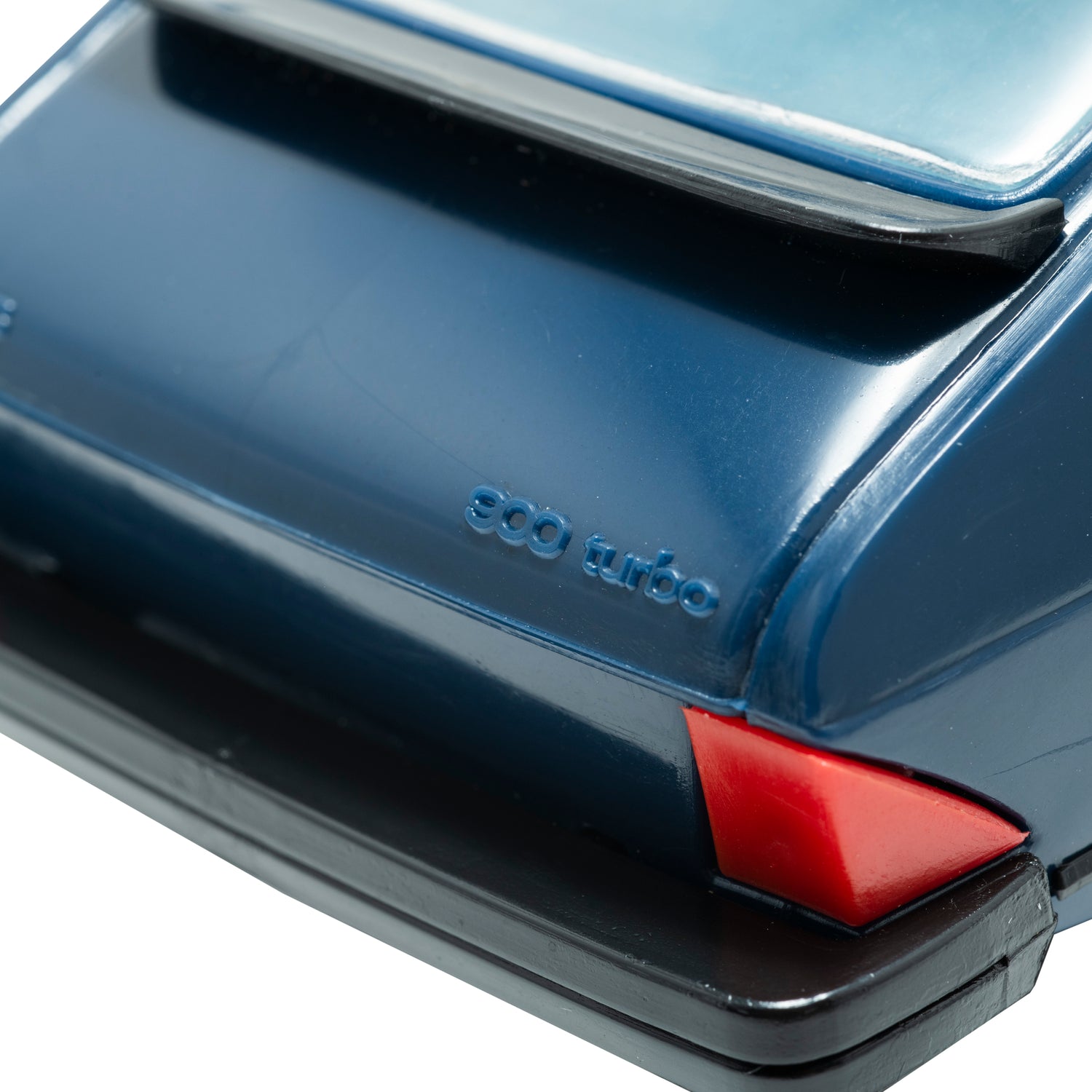 This vintage dealer promo model car made by Finnish manufacturer Stahlberg is styled in the form of a blue Saab 900 Turbo sedan, and features black-accented bumper guards, silver grille, white headlights, red turn signals, and signature wheels. Clear windows and front and rear windshields give way to a detailed interior including seat cushion stitching and dash features. Measuring approximately 8 1/2” x 3” x 2 3/4”, it has more than enough presence to be eye-catching, but is equally subtle, seamlessly fitting into any shelf or desk space.