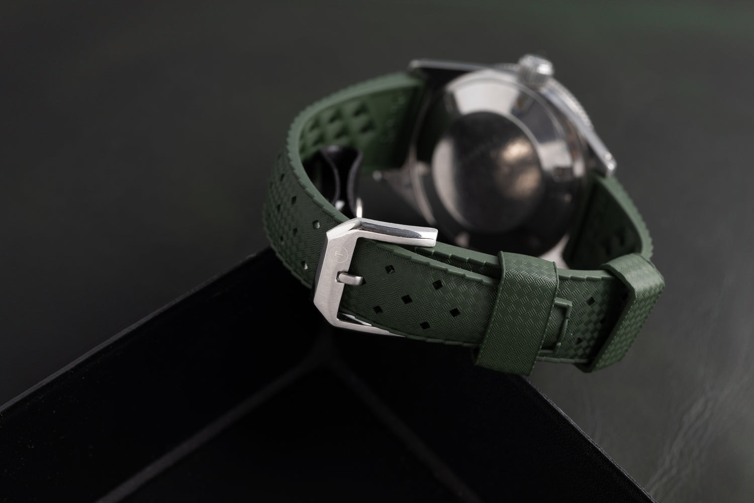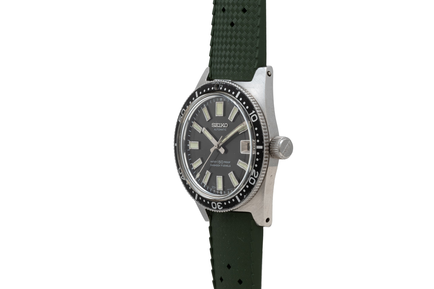 Fresh off a professional service, we’ve treated this Seiko icon with some much needed TLC and have outfitted it on a proper green Tropic rubber strap with matching stainless steel hardware.