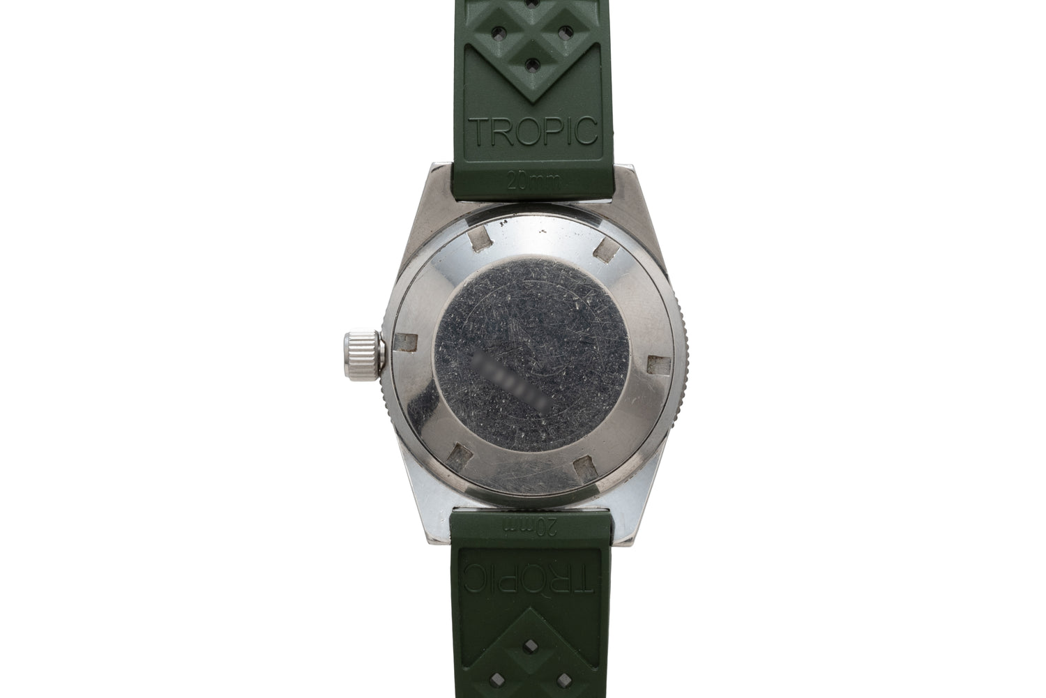 The Reference 6217— also known as 62MAS (for autoMAtic Self-dater) — was designed to be a workhorse. This example, a Reference 6217-8000, features a 37mm stainless steel case with sloping lugs and a low-profile ‘skin diver’ silhouette that is equally unobtrusive and undeniably comfortable on the wrist.