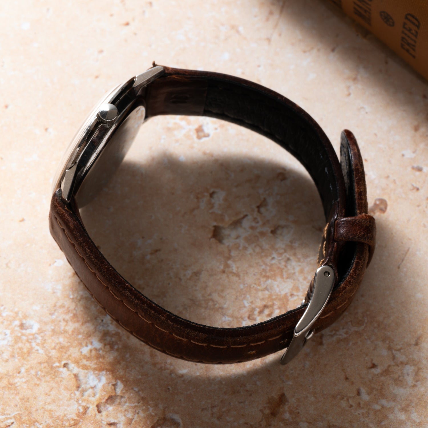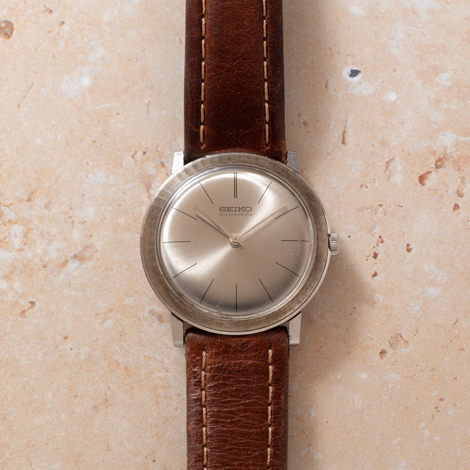 The silver sunray dial reflects like brushed aluminum under studio lights. Minimal printed indices keep things disciplined, allowing the faceted bezel and sharp handset to do the talking. Even the original “nipple” crown remains crisp — a small but satisfying detail for those who notice.