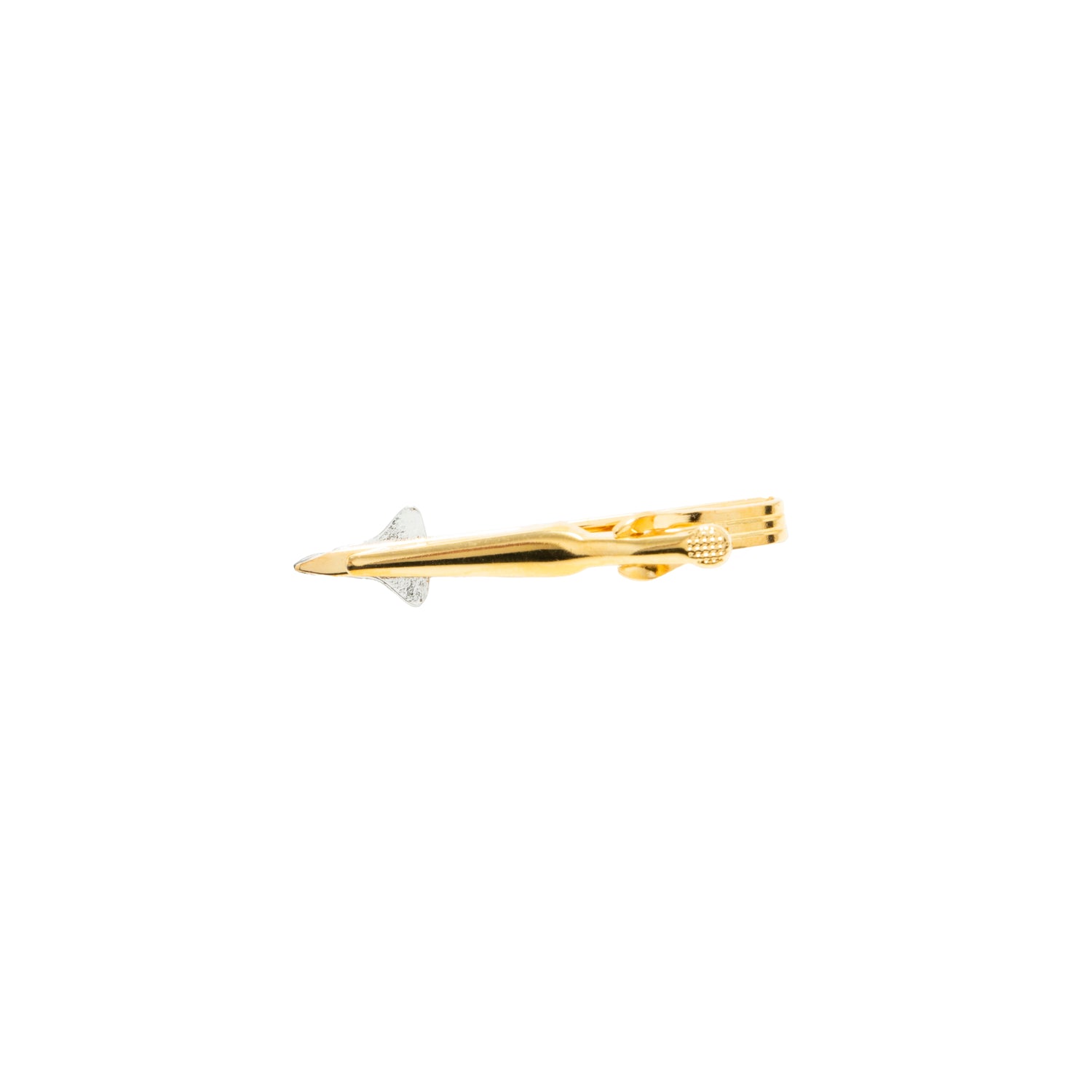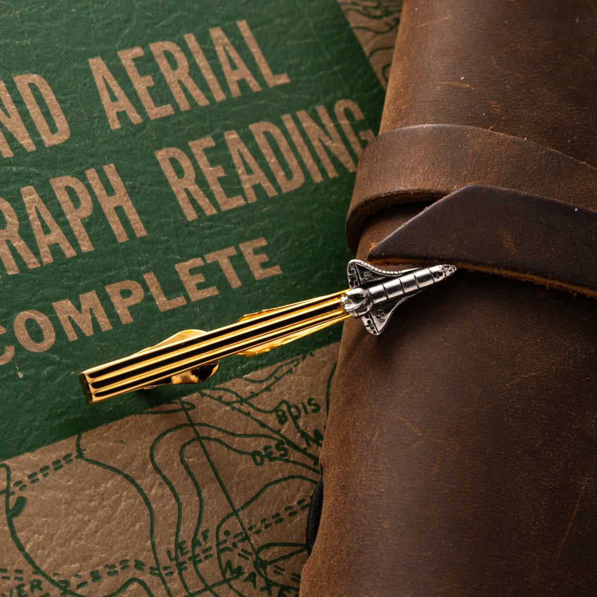 This vintage tie clip from Swank — an American producer of men's jewelry and accessories founded as the Attleboro Manufacturing Company in 1897 — takes in the shape of a ribbed gold-tone bar topped with a pewter Space Shuttle. Accompanied by its felt presentation box (and even its original price tag!), this sartorial accessory is perfect for NASA fans...provided they can still find the occasion to wear a tie, of course!