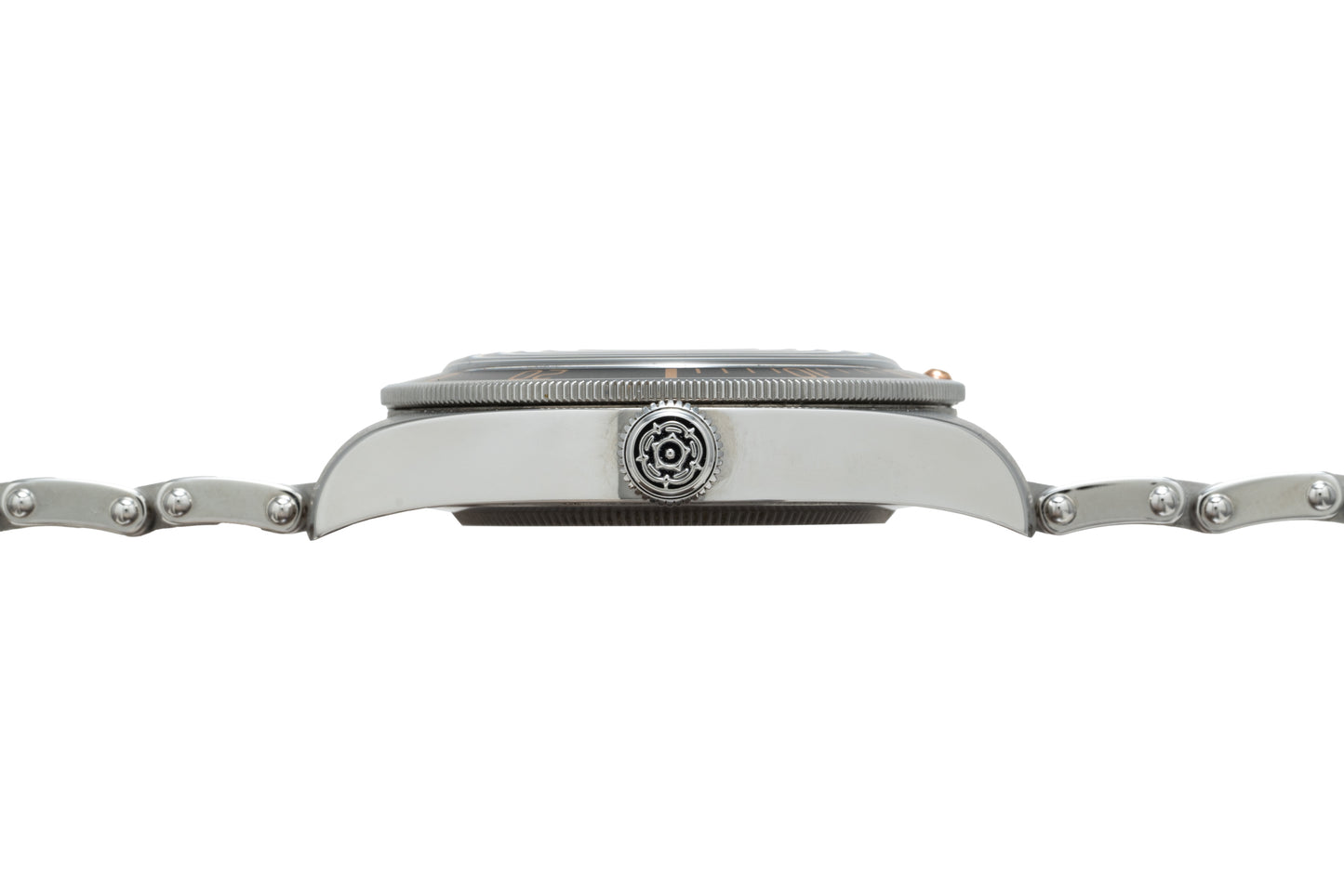 The particular Black Bay Fifty-Eight we have here, a Reference M79030N, features a 39mm stainless steel case with a sapphire crystal, a unidirectional rotating dive timing bezel with a black 'gilt' insert, a matching luminous matte black 'gilt' dial with a matching ‘snowflake’ handset, and a screw-down rose crown. Powered by the automatic, chronometer-certified Tudor MT5400 movement, it comes fitted to a matching stainless steel Oyster bracelet with a signed fliplock clasp.