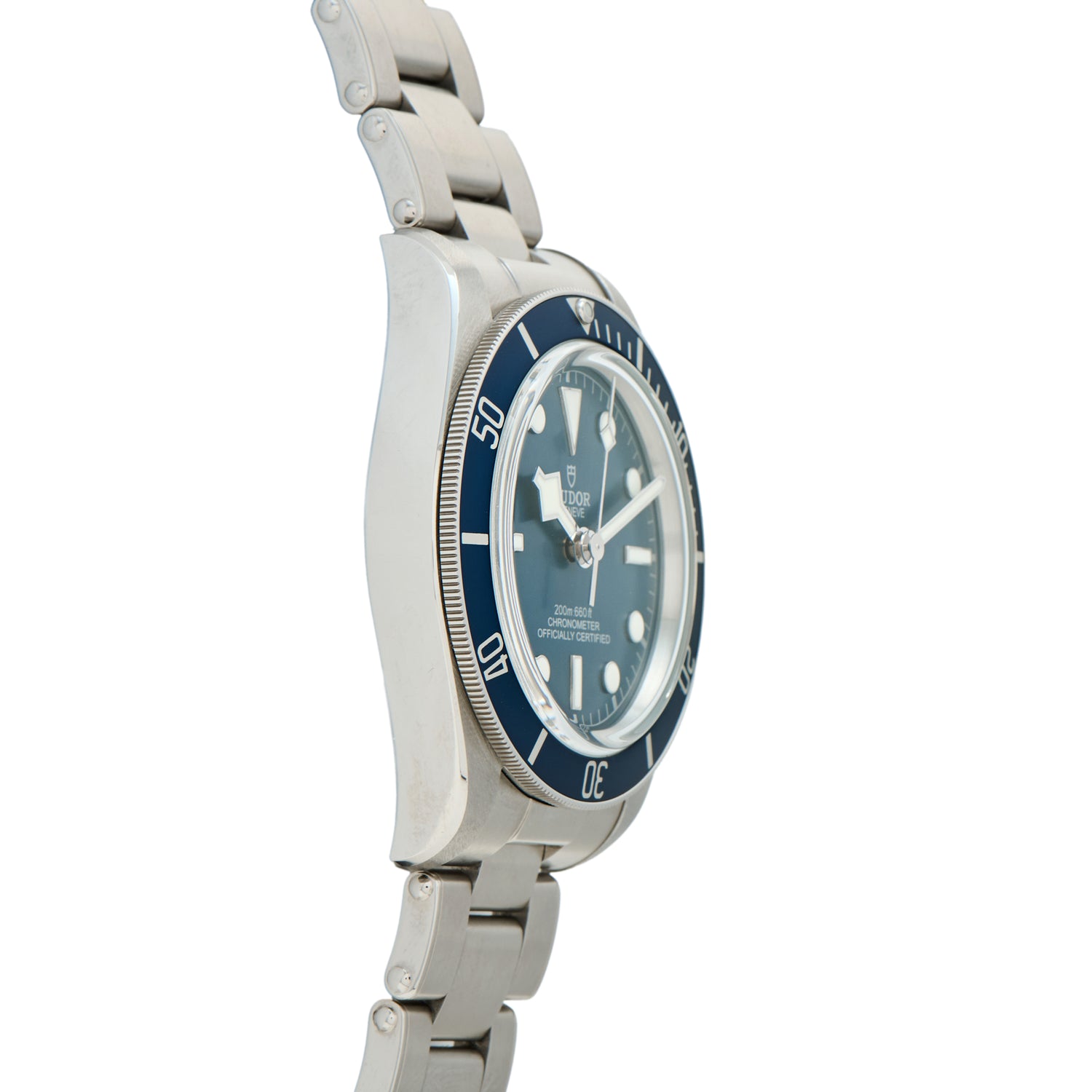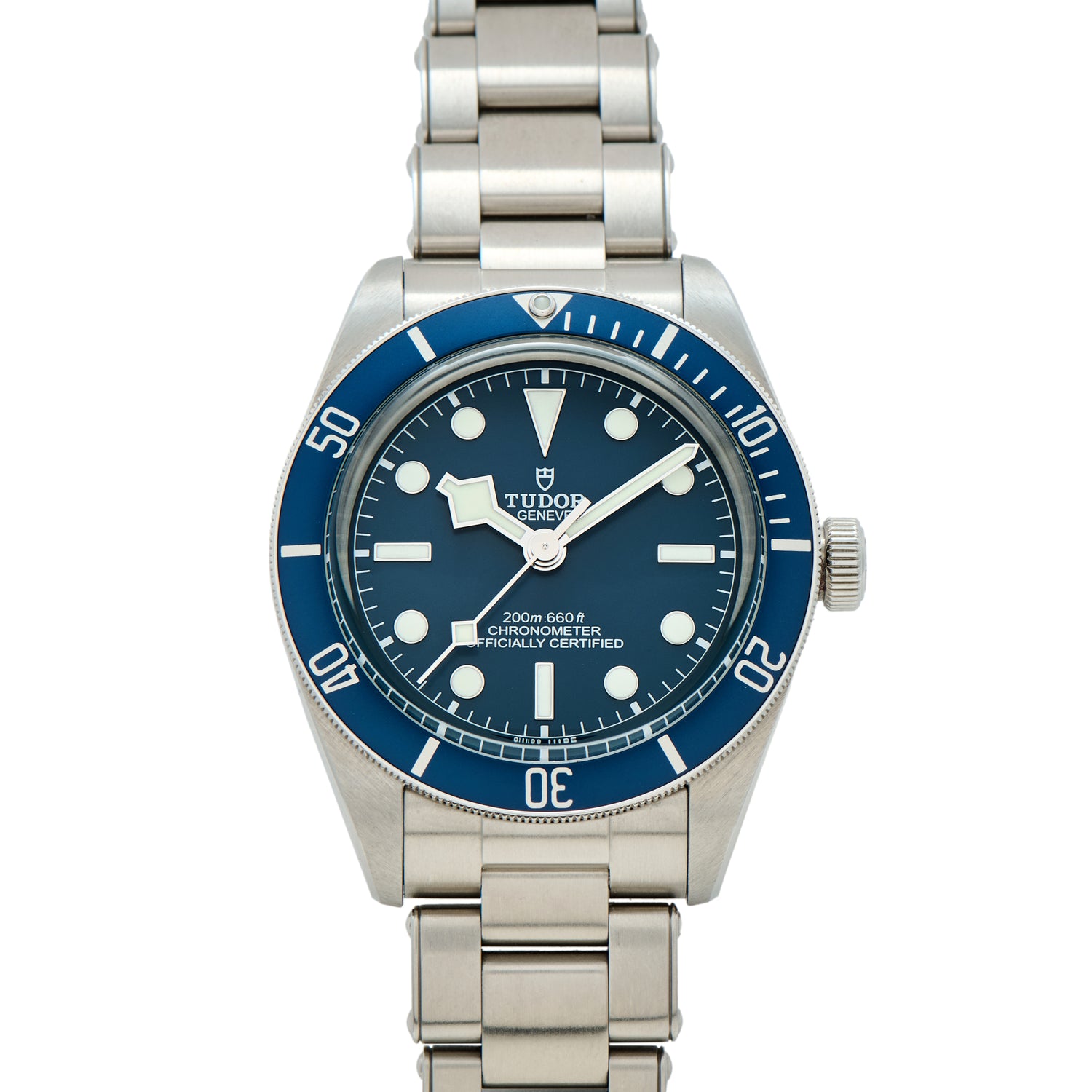 The particular Black Bay Fifty-Eight we have here, a Reference M79030B-0001, features a 39mm stainless steel case with a sapphire crystal, a unidirectional rotating dive timing bezel with a blue insert, a luminous matte blue dial with a matching ‘snowflake’ handset, and a screw-down rose crown. Powered by the automatic, chronometer-certified Tudor MT5400 movement, it comes fitted to a matching stainless steel Oyster bracelet with a signed fliplock clasp and also includes a nato-style strap.