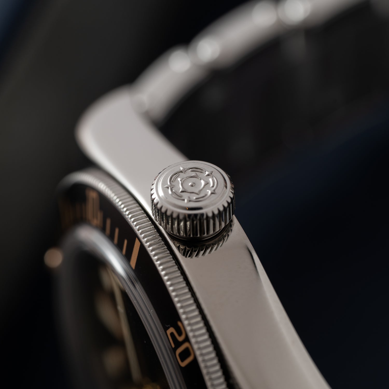 The Fifty-Eight distills everything collectors admire about vintage dive watches—especially those from Tudor and Rolex—into a thoroughly modern, effortlessly wearable timepiece. First introduced with a black dial in stainless steel, the line has since grown to include bold alternatives in bronze, gold, and even sterling silver.
