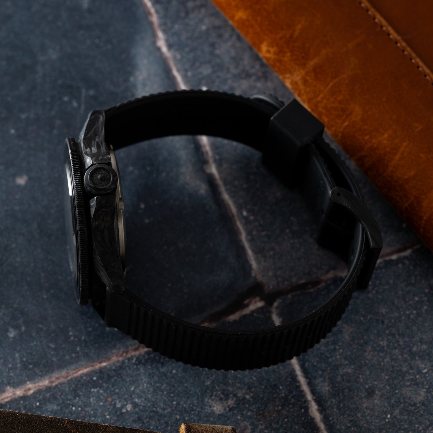StrapHabit x Analog:Shift Black Tropical Retro-Style FKM Rubber Quick-Release Strap