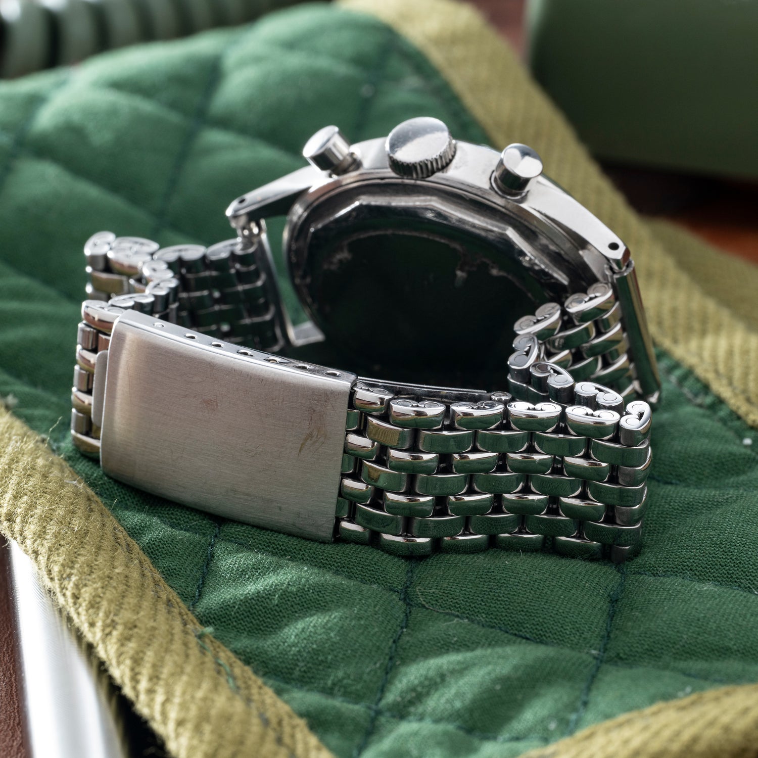 Powered by a hand-wound,and stunning manually wound Calibre 386 movement and paired to a stainless steel multi-link bracelet, this striking watch is undoubtedly one of the most incredible watches we have had come through the office. Historically significant, outfitted with incredible detailing, and preserved in beautiful condition, this watch checks all the boxes to drive a vintage enthusiast mad. It won't last long so act quick.