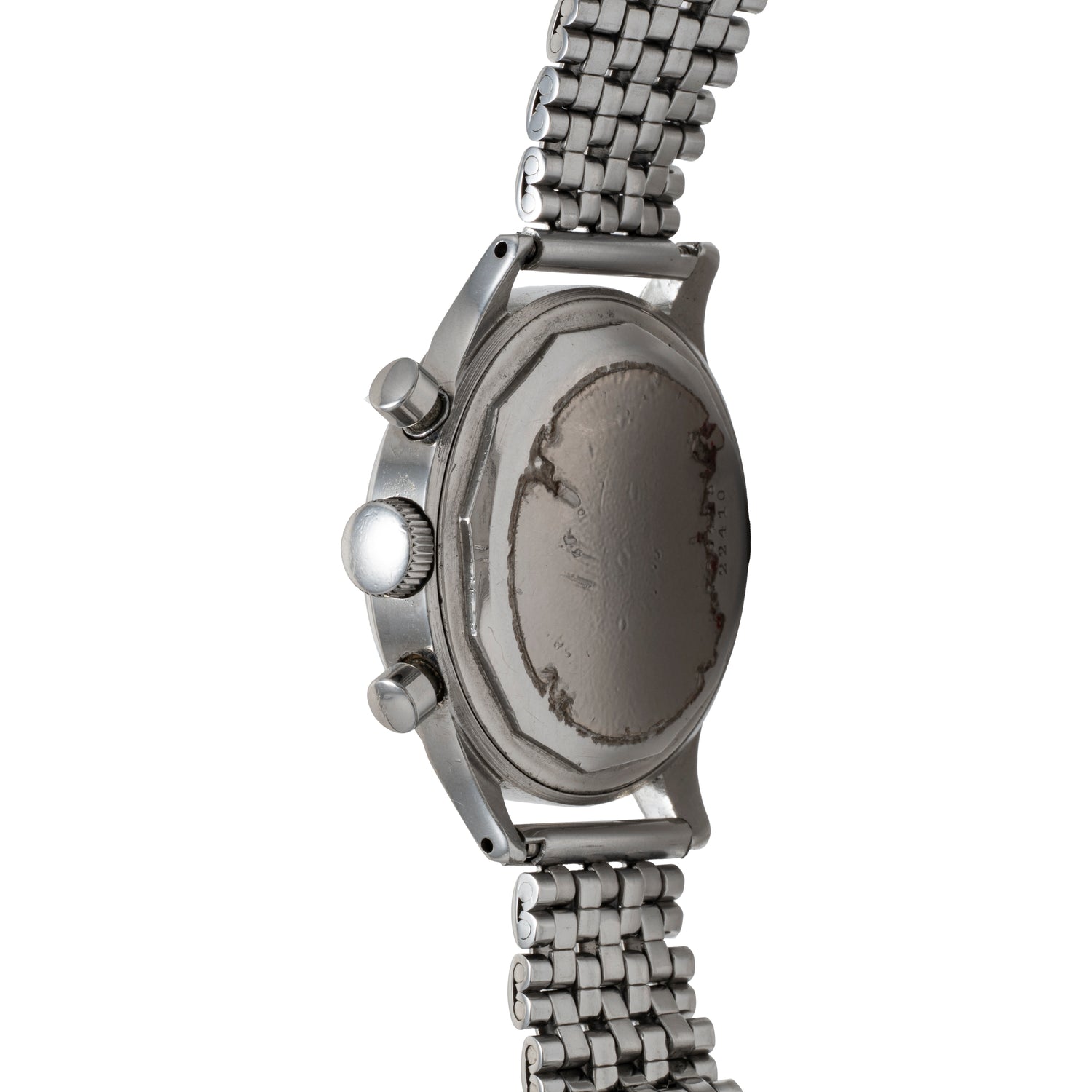 Perhaps the most defining attribute of this piece is its case. Notably, a case made by C.R. Spillman, a firm founded in Switzerland in 1884. Spillman made cases for Patek, Rolex, Vacheron Constantin, Audemars Piguet, and others. Measuring a contemporary for its time 38mm in diameter, this watch was quite different from the 31-36mm sizing characteristic of chronos of the era.