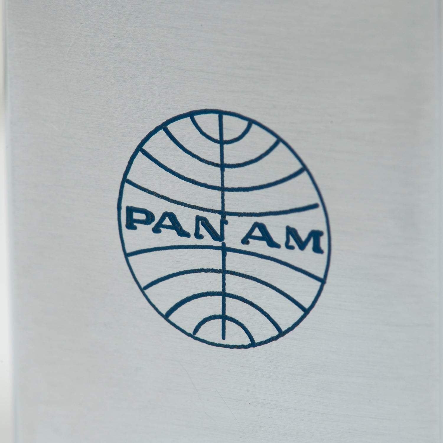 Dating to the 1950s-1960s, this particular find is a Zippo-style Penguin windproof lighter signed with the Pan Am globe logo. Fashioned in stainless steel and including its original burgundy cardboard box, this Japanese-made object is truly a museum piece of a find.