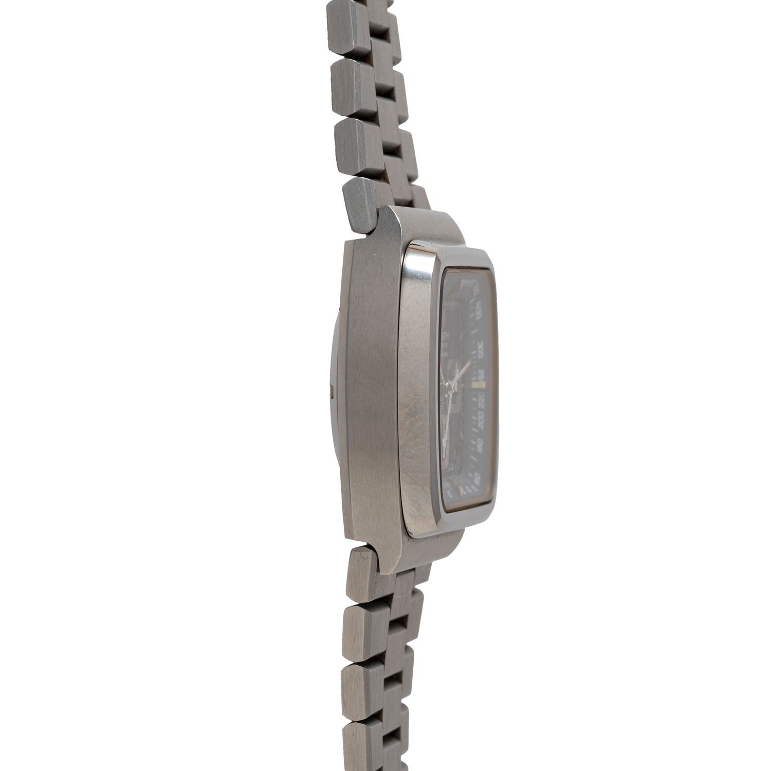 Capturing the era of the 70s with its whimsical TV case, this El Primero features an integrated bracelet vaulted tachymeter scale, and a whimsical date window at roughly 4:30. The lovely blue dial contrasts with the steel case while silver chrono registers add contrast to the design.
