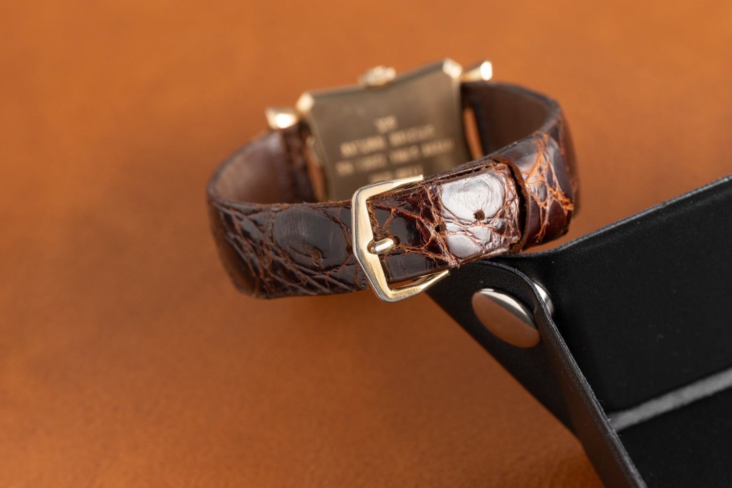Accompanied by its original inner and outer presentation box, papers, hangtags, and a signed, alligator leather strap with a matching gold-tone pin buckle, this piece offers up an incredible opportunity to own an interesting piece of history.